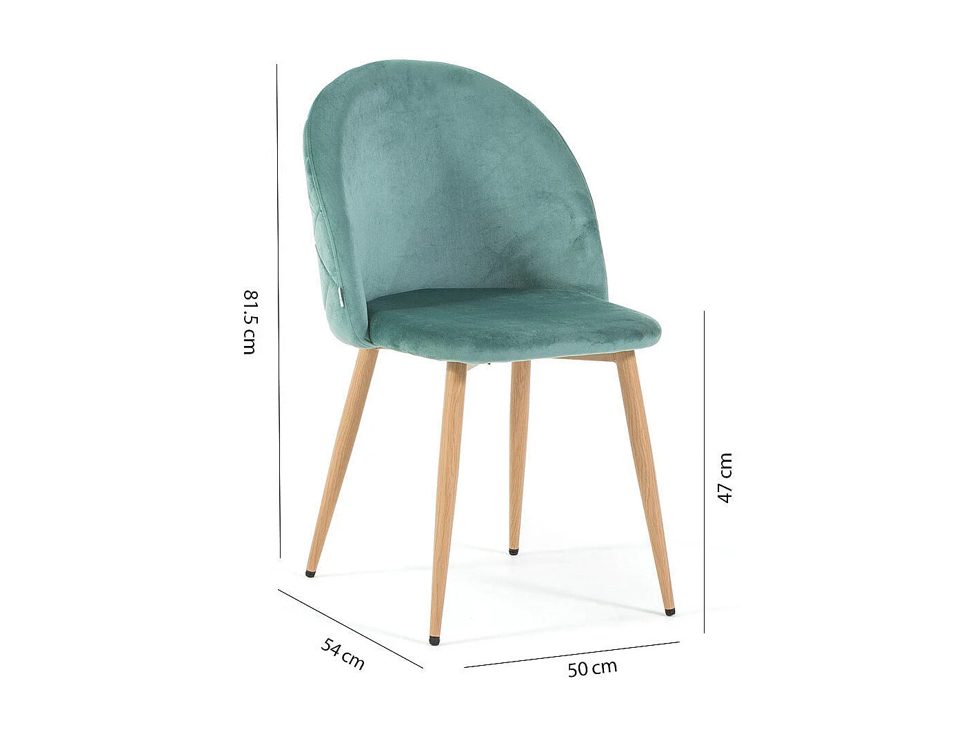 Lot de 2 chaises en velours avec pieds en métal, design élégant pour cuisine, salle à manger, bar ou restaurant – Sara – Vert jade/Effet bois