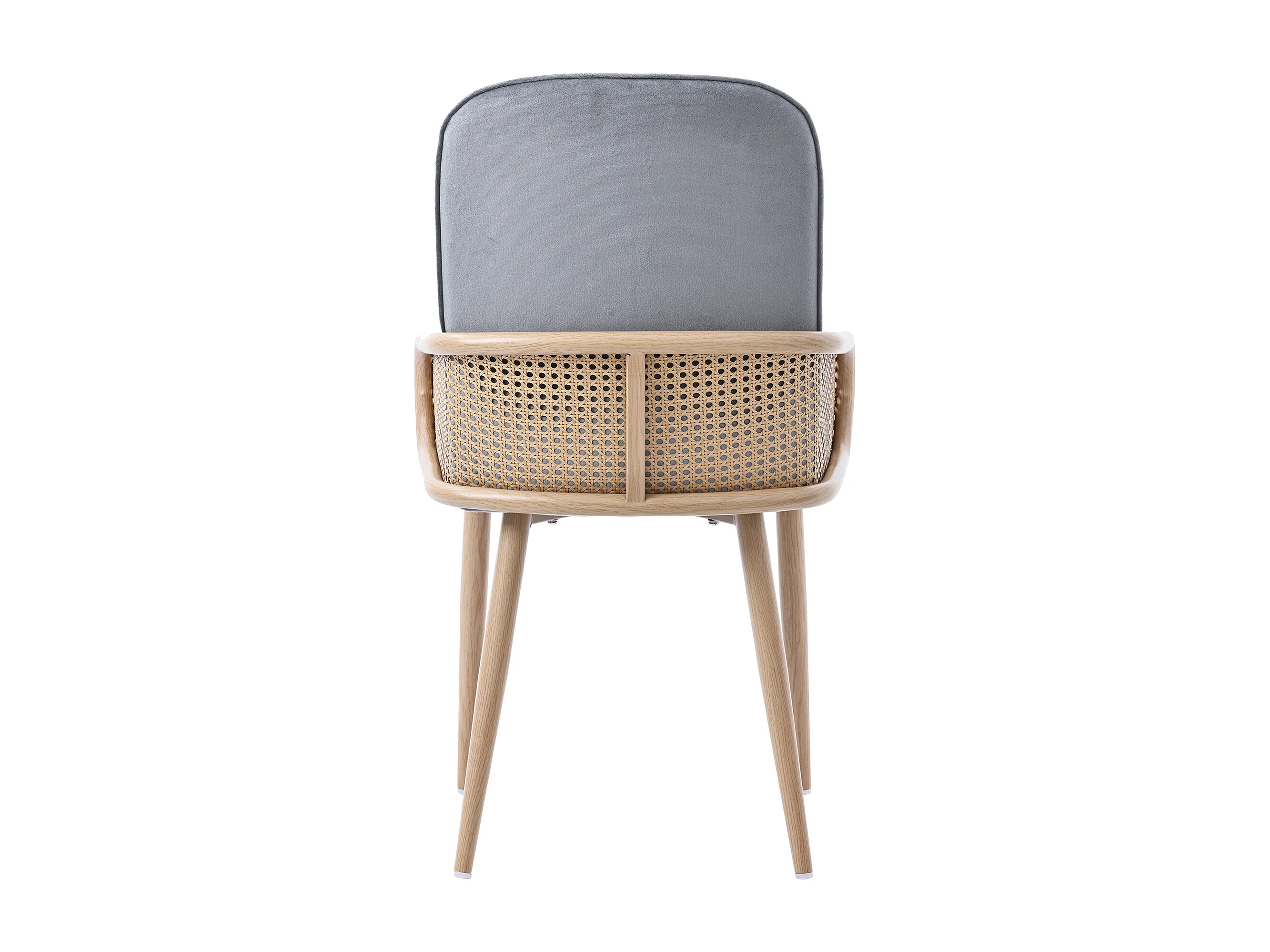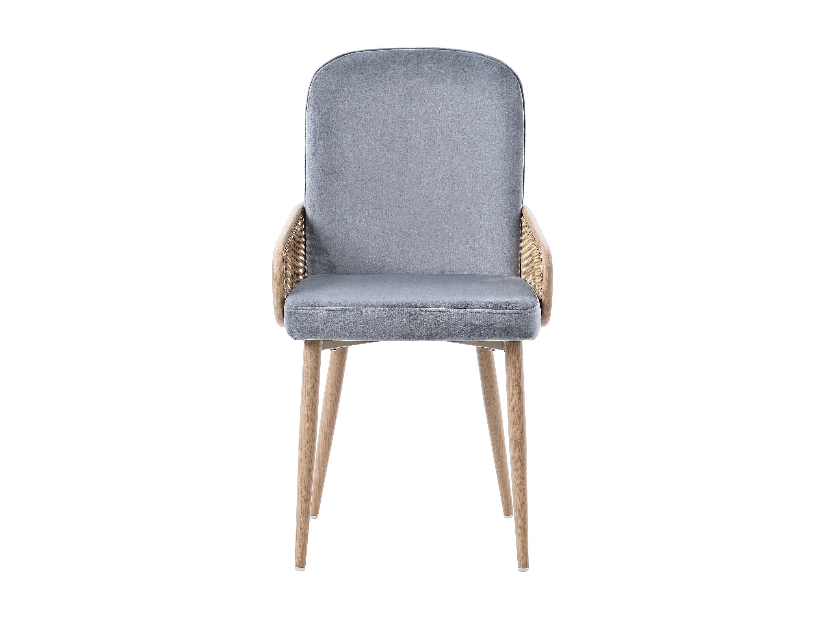 Lot de 2 chaises en velours avec pieds en métal - Design rotin - Gris et bois clair