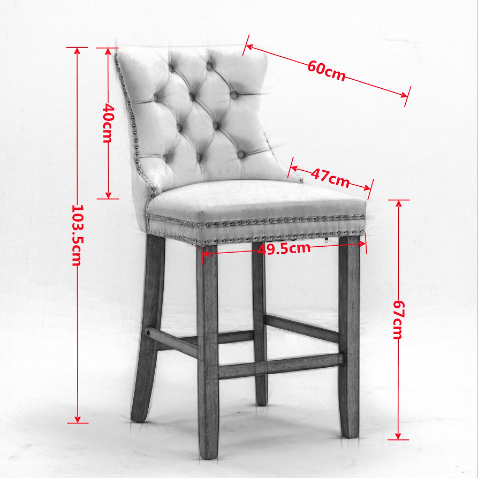 Lot de 2 chaises en velours bleu avec capitonnage à boutons et garniture à têtes de clous, pieds en bois