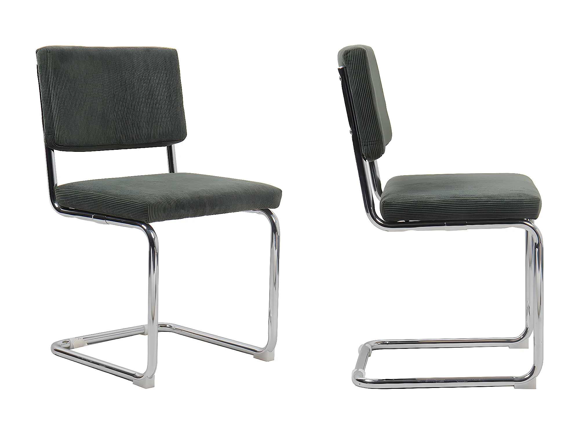 Lot de 2 chaises en velours côtelé vert et métal chromé - Dulce