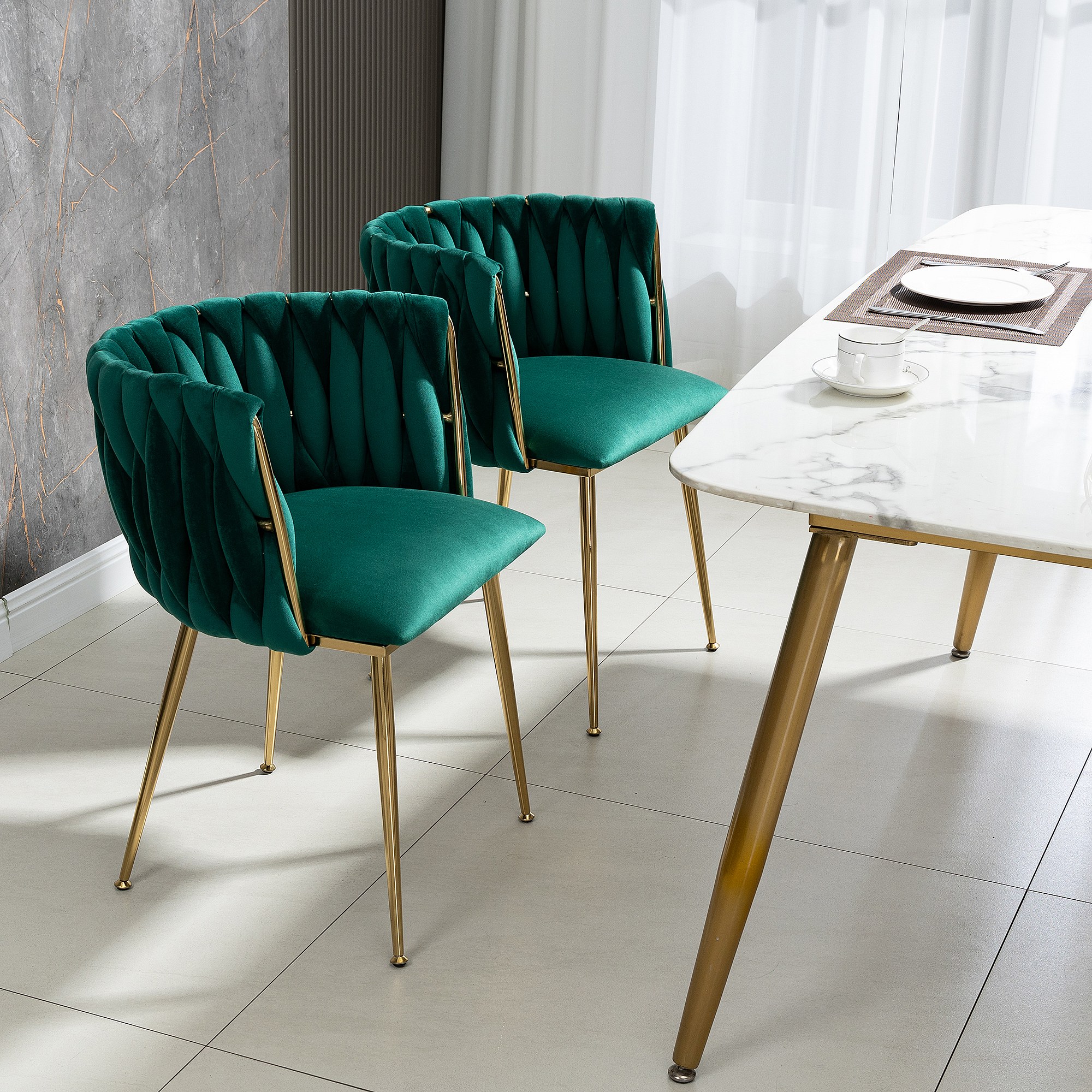 Lot de 2 chaises en velours et métal doré - vert émeraude