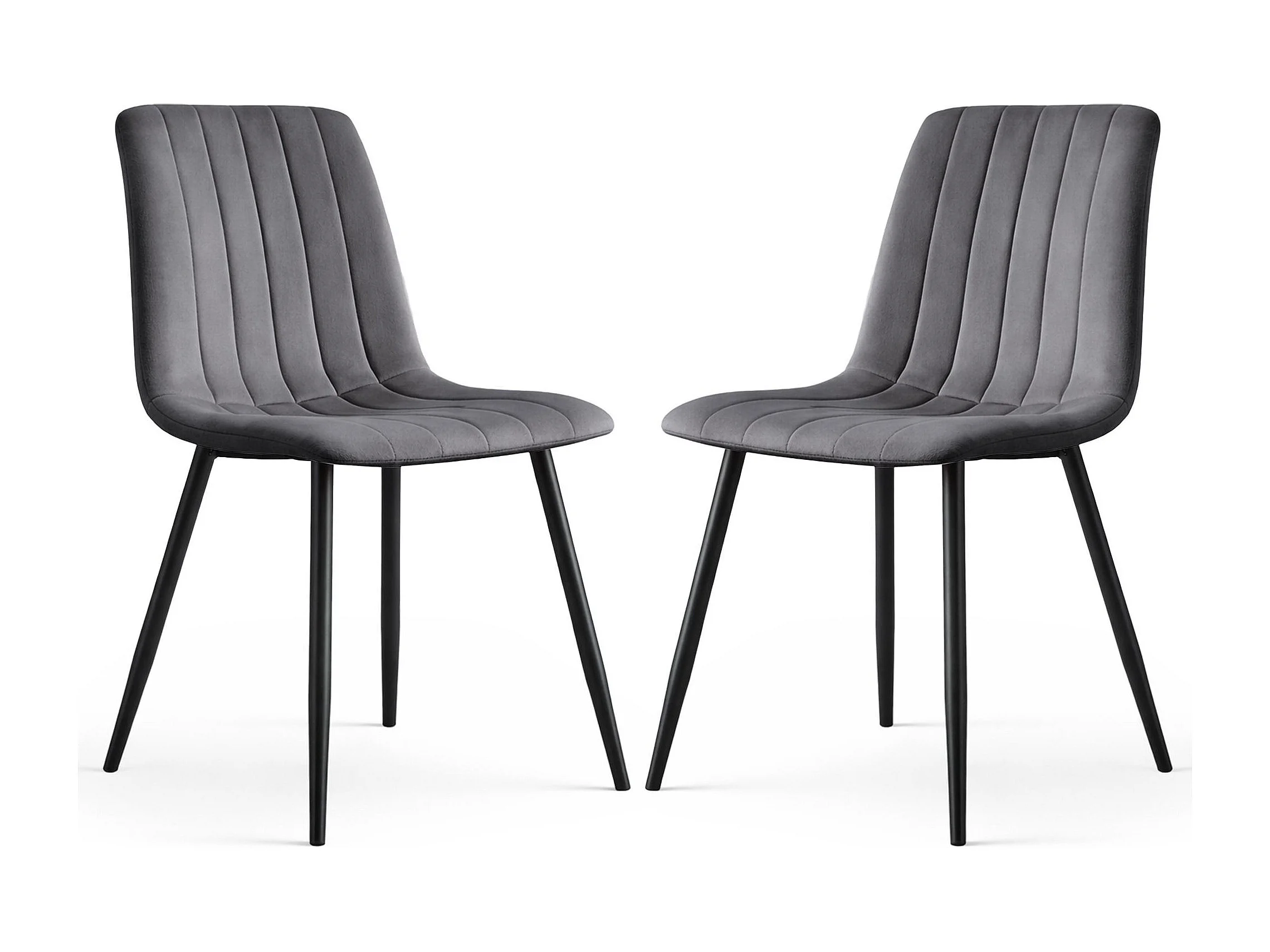 Lot de 2 Chaises en velours matelassées LIVO Graphite Foncé pieds noirs
