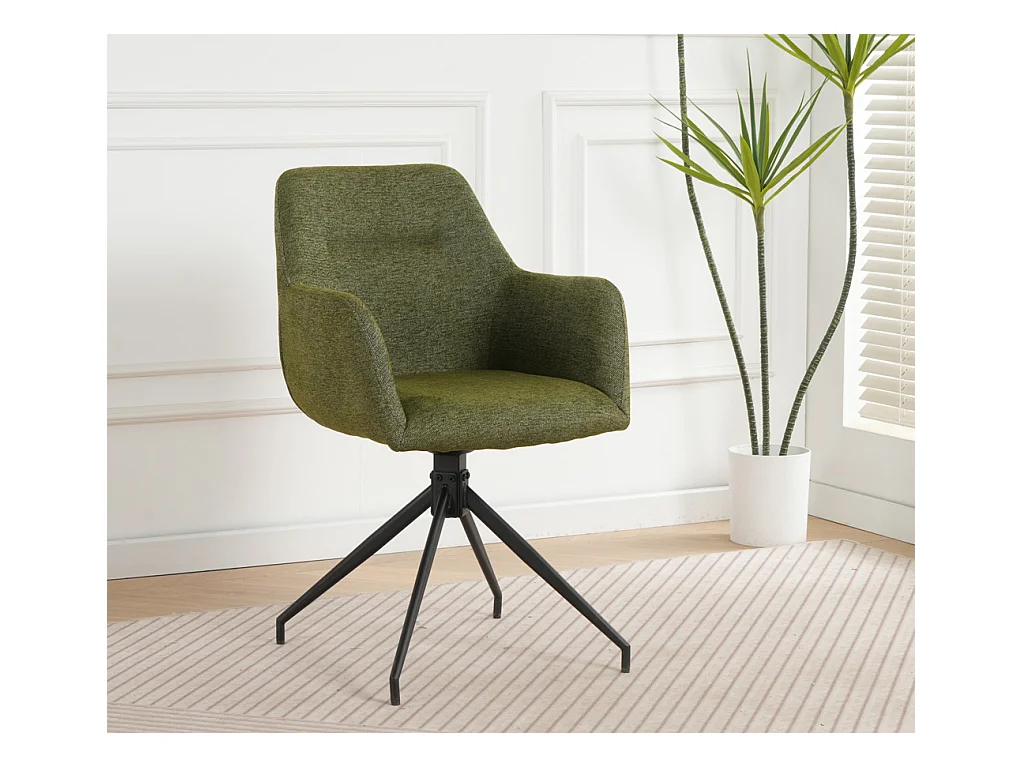 Lot de 2 chaises fauteuils de table MORINI pivotants avec accoudoirs en tissu vert pour salle à manger, pieds en métal noir