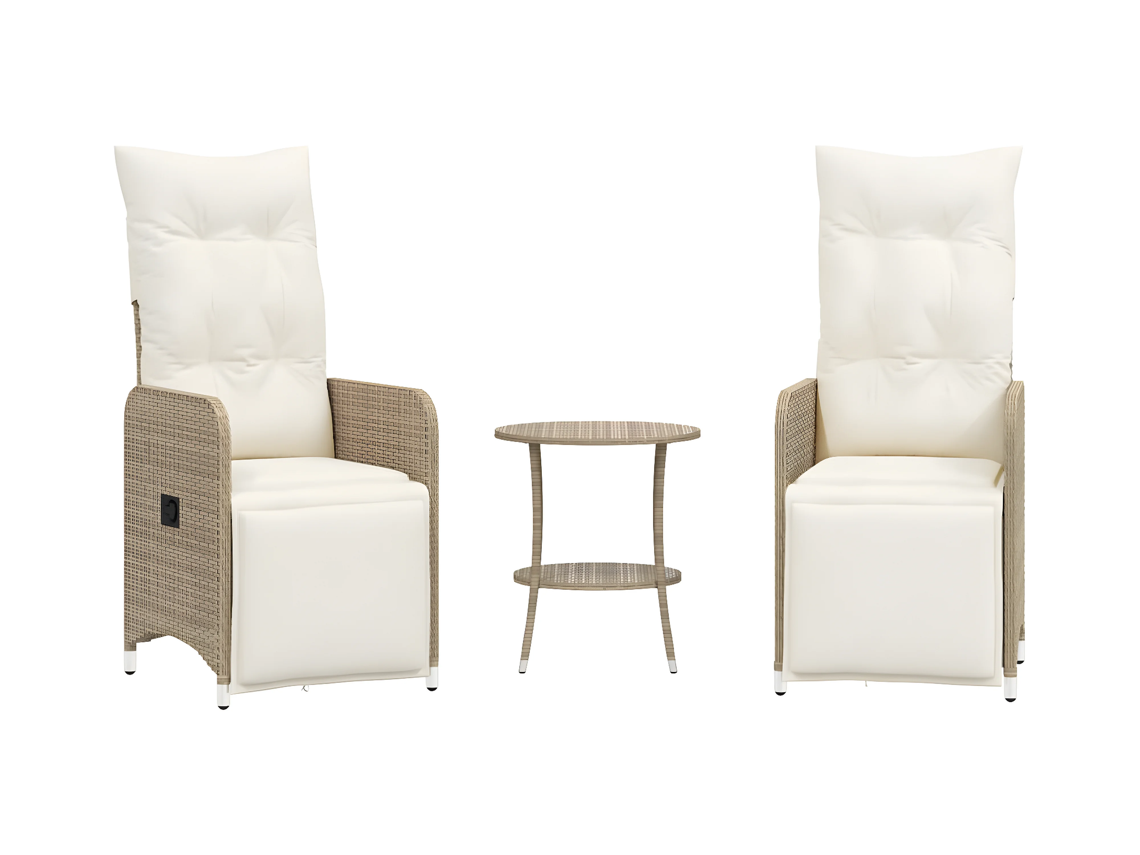Lot de 2 Chaises inclinables de jardin avec table beige rotin FR18185