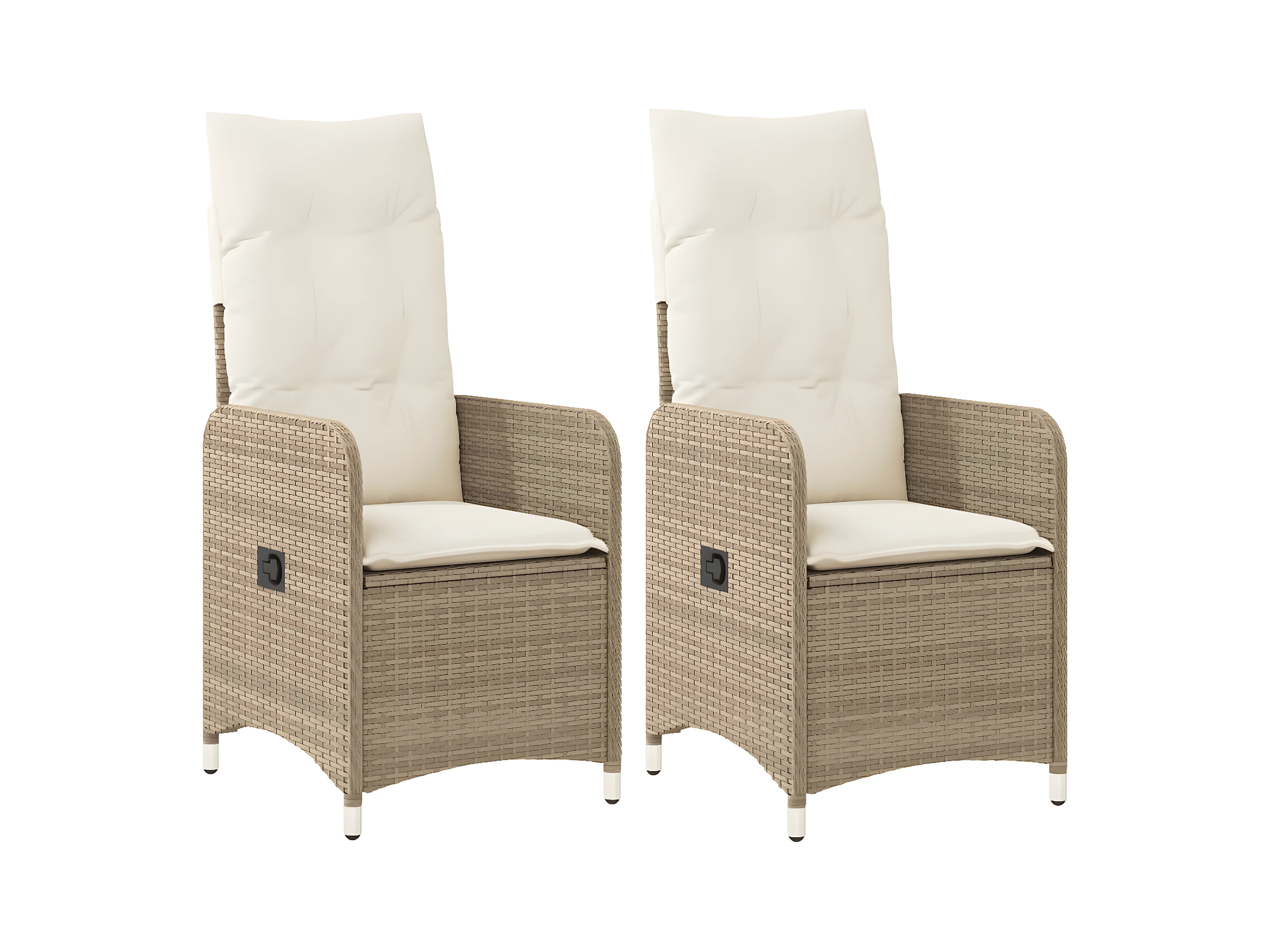 Lot de 2 Chaises inclinables de jardin et coussins beige rotin FR88814