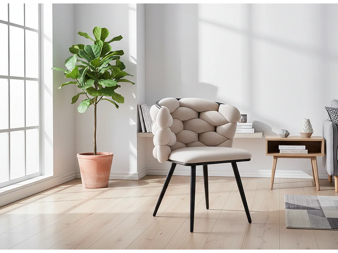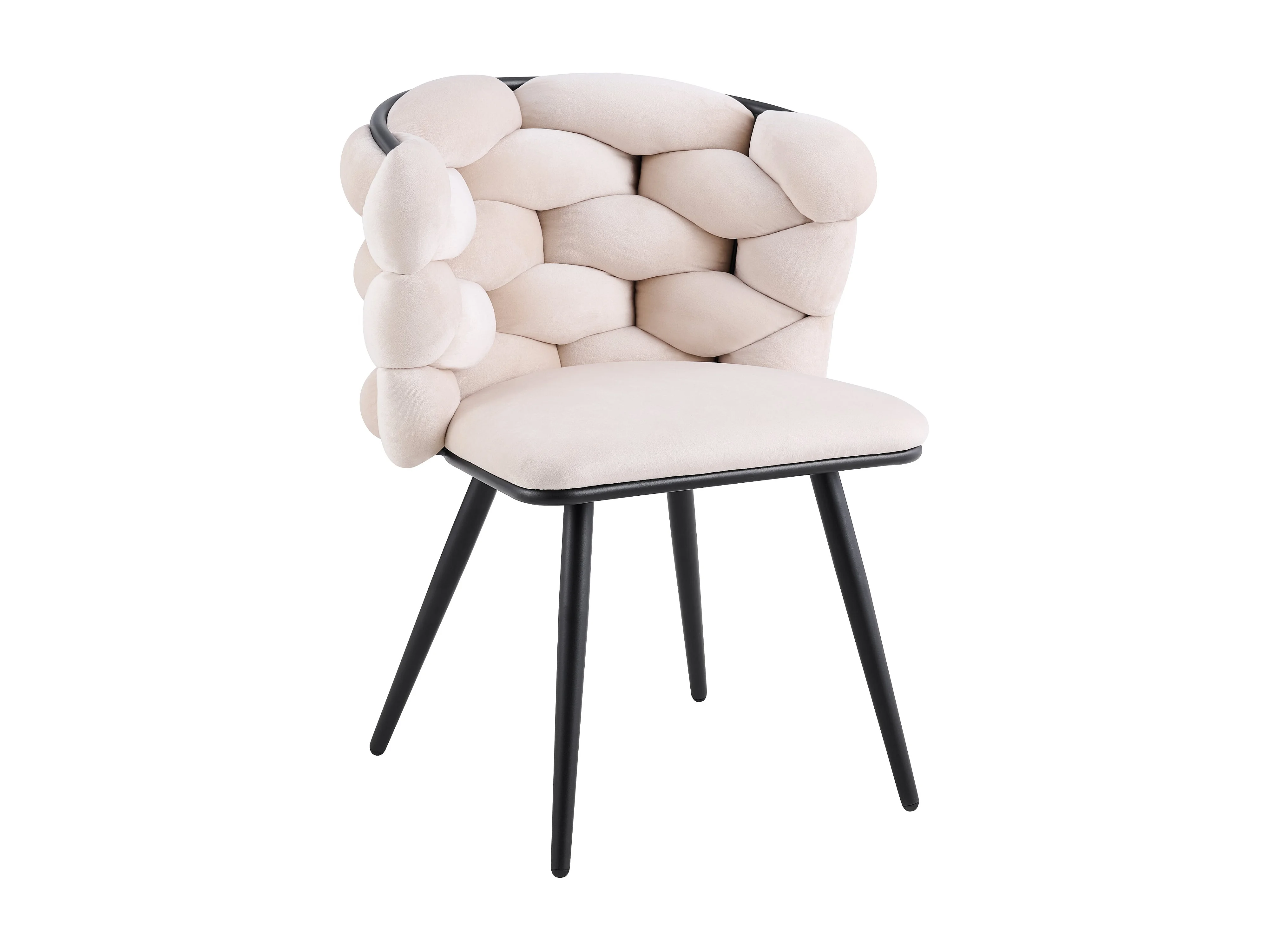 Lot 2 Chaises Salle à Manger Tissu Beige Dossier Tressé 60x60x77cm LOLIPOP