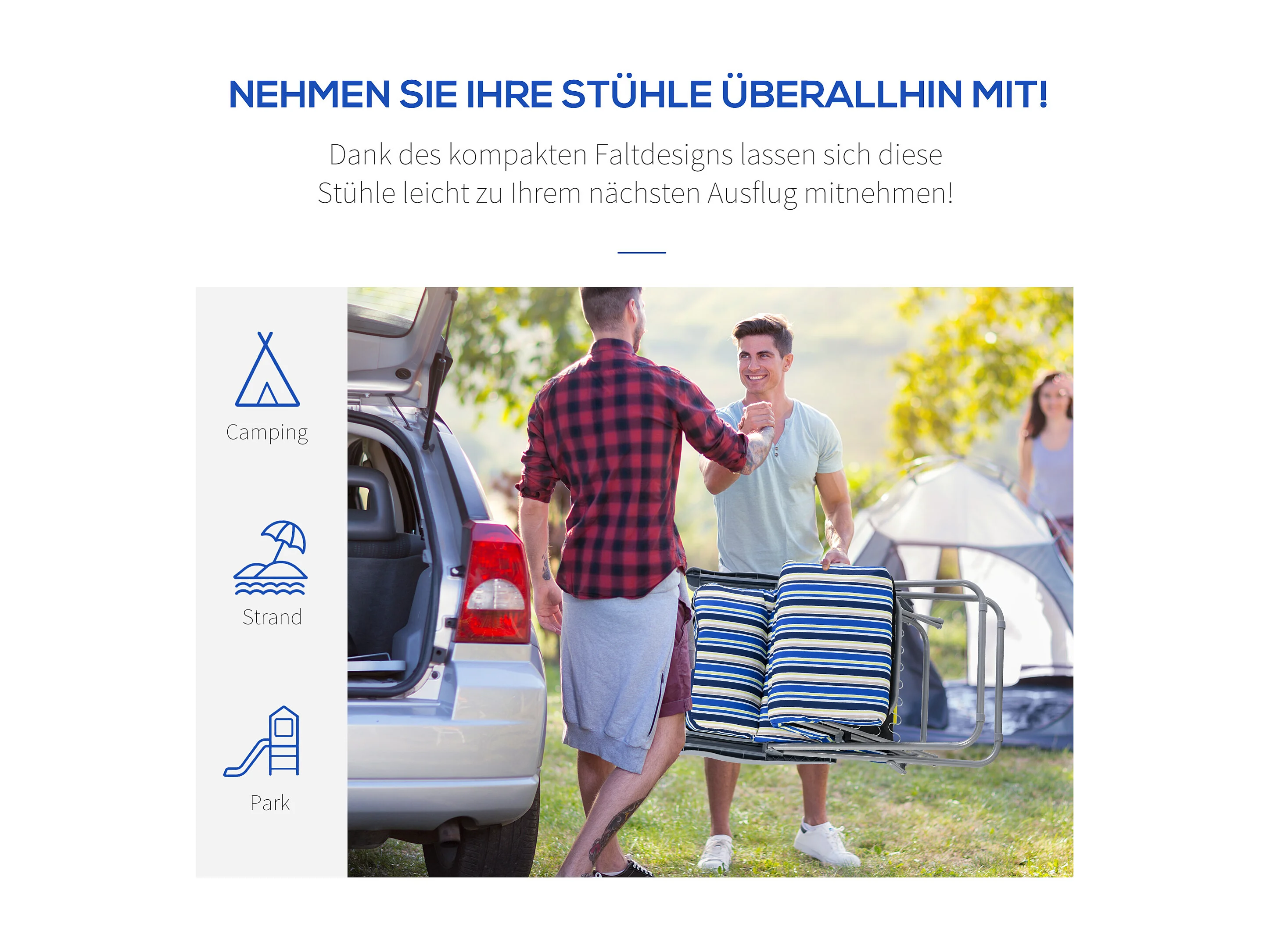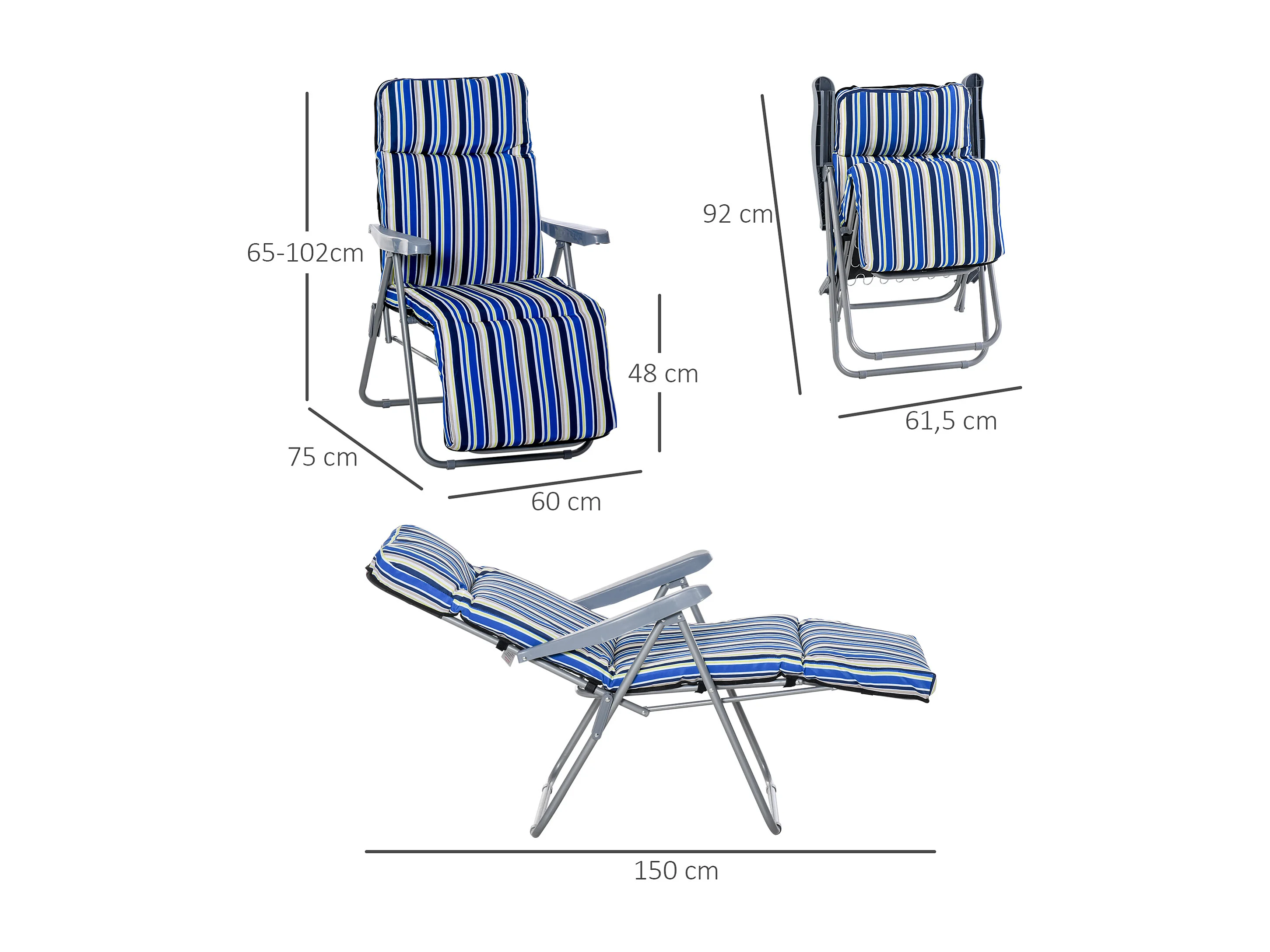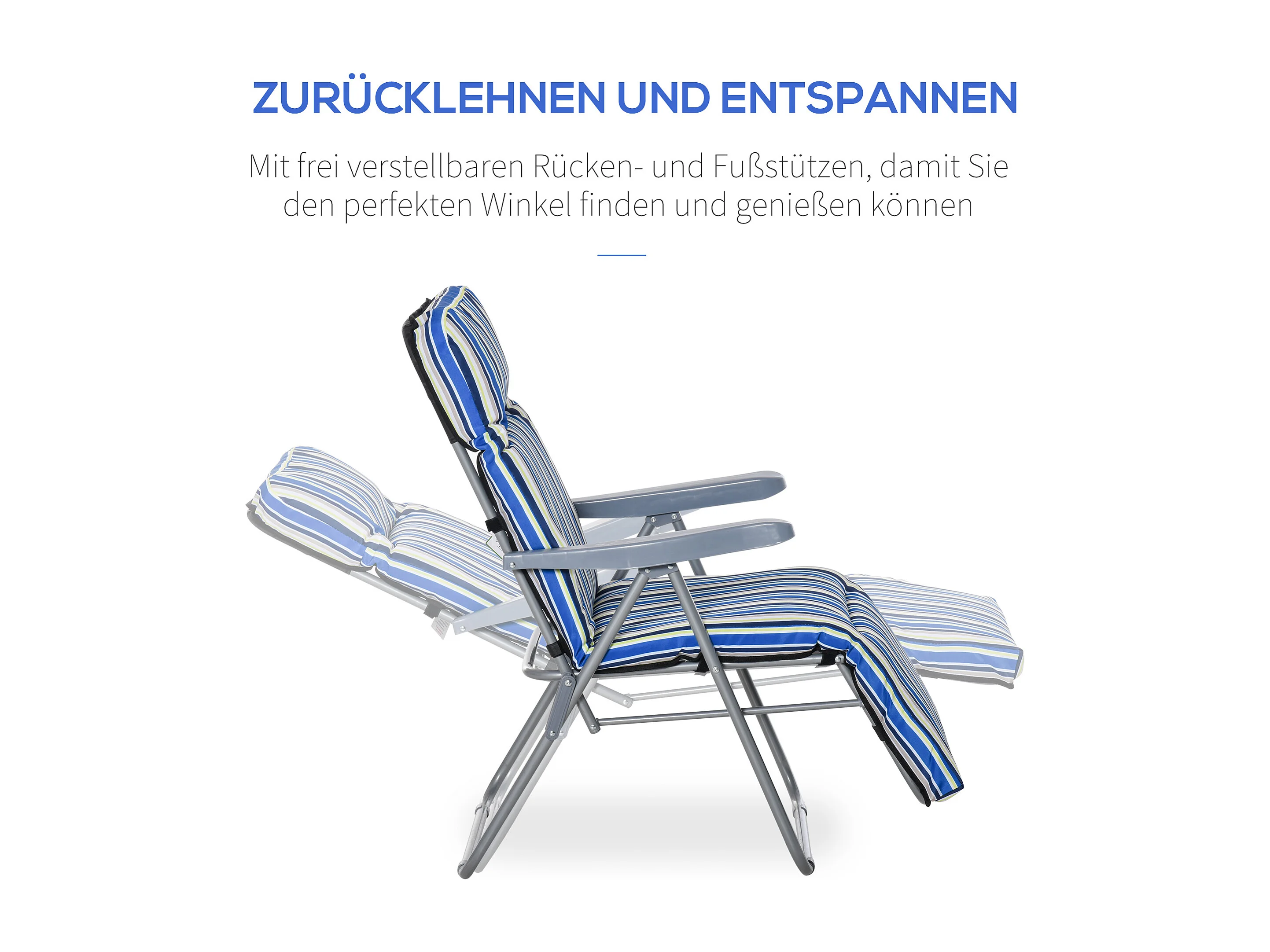 Lot de 2 chaises longues pliantes avec coussin, dossier réglable, acier et polyester, bleu (60x75x65-102cm)