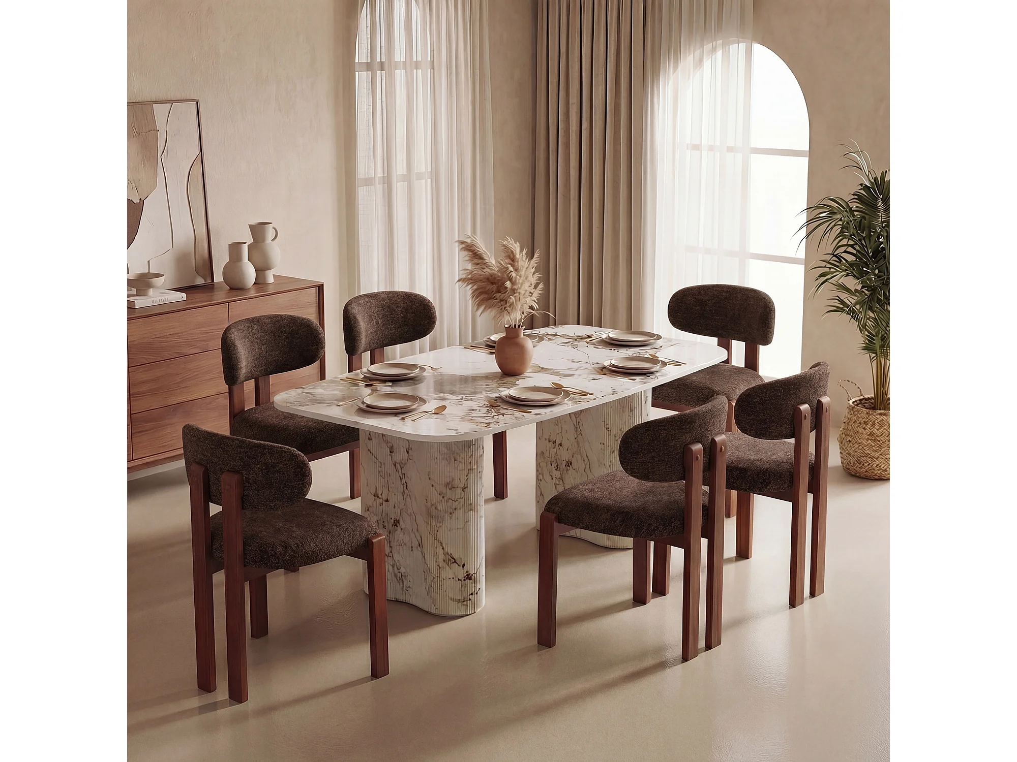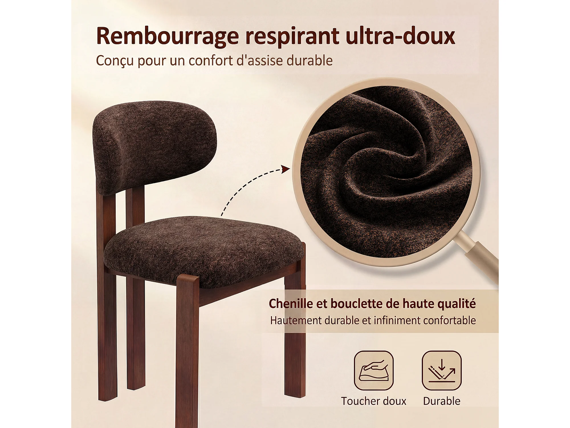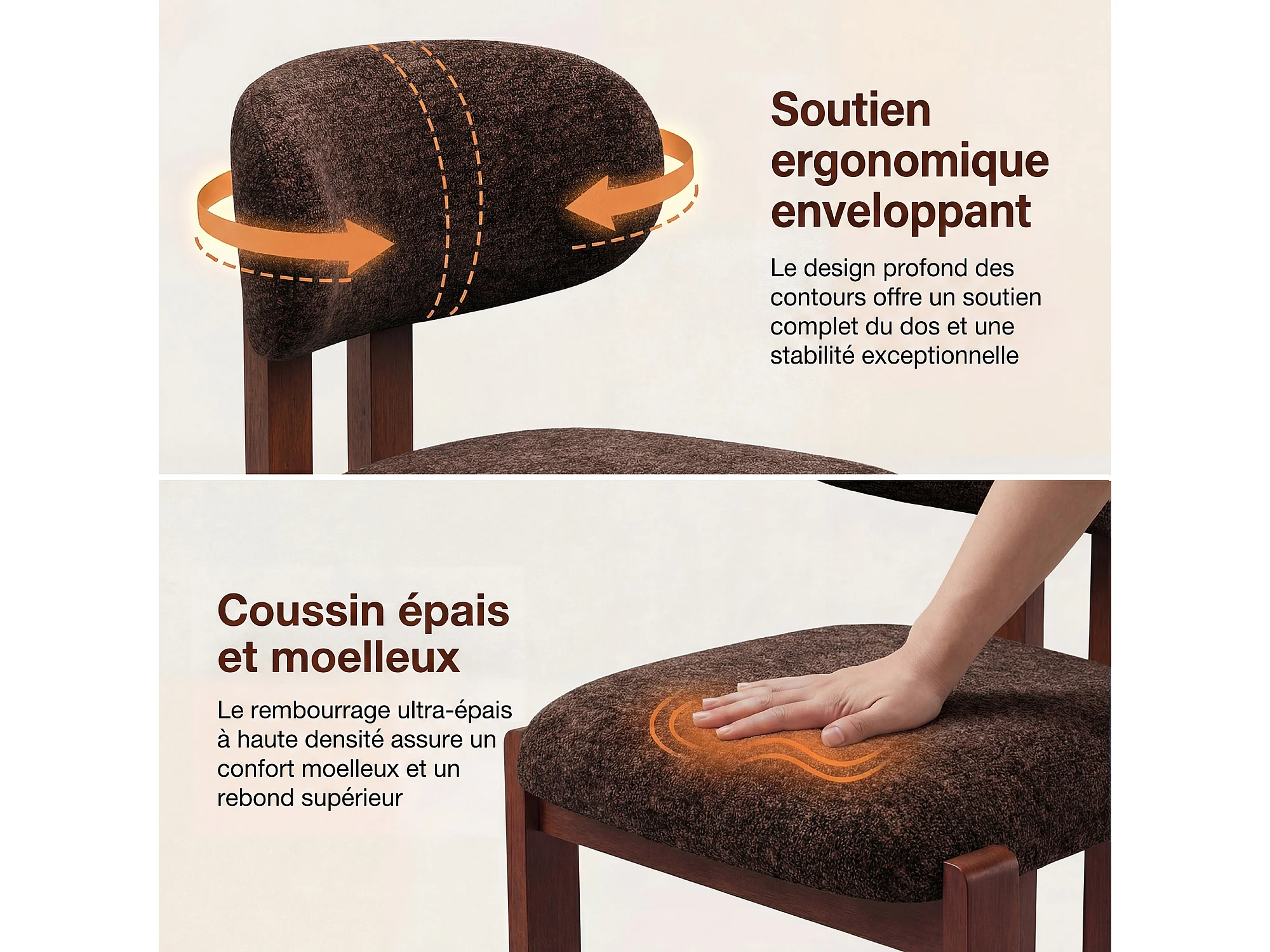 Lot de 2 chaises marron foncé SMARTUE, revêtement en tissu chenille, assise épaisse, dossier incurvé, pieds en bois d’hévéa