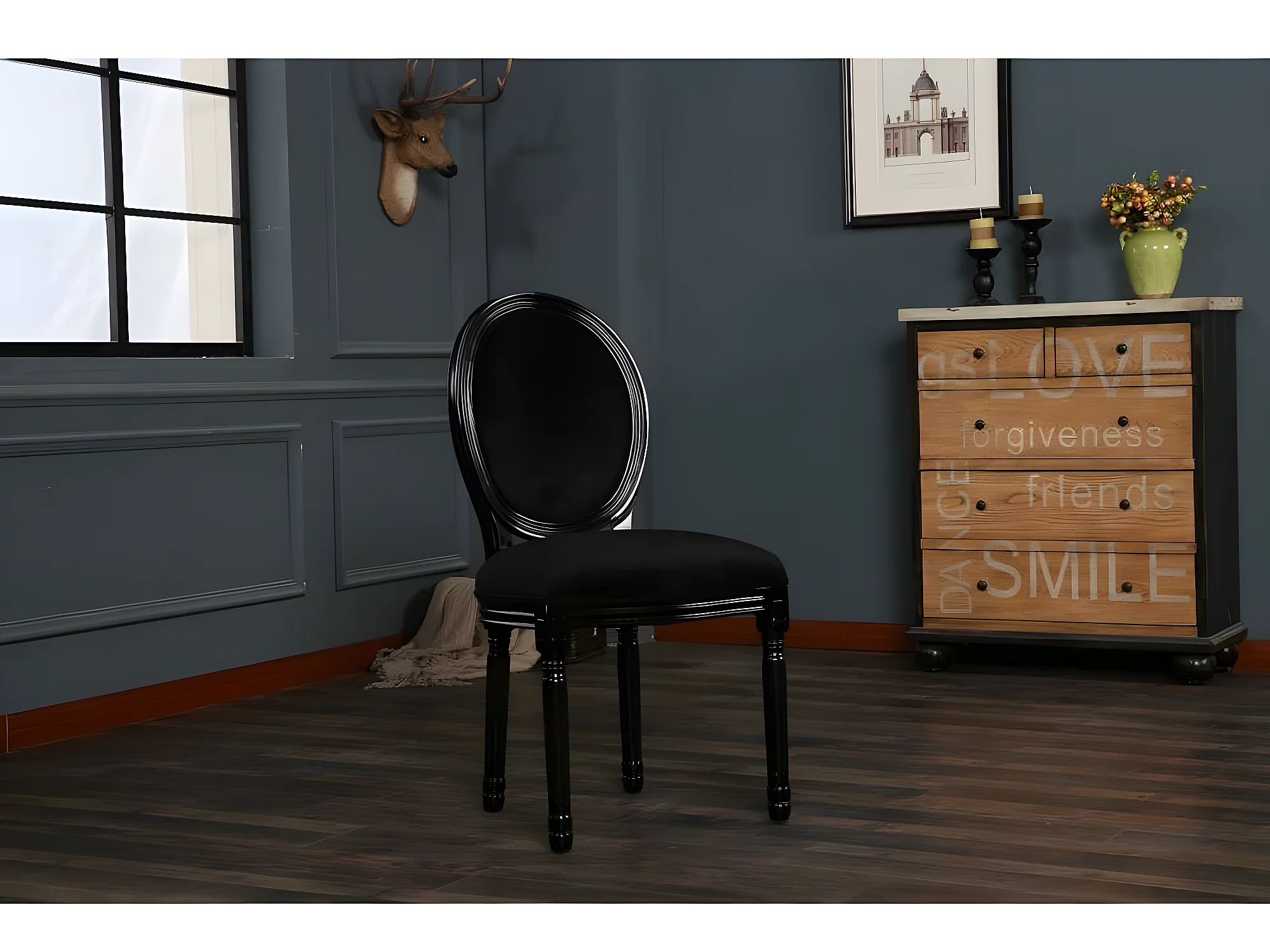 Lot de 2 chaises médaillon VERSAILLES style louis XVI velours noir