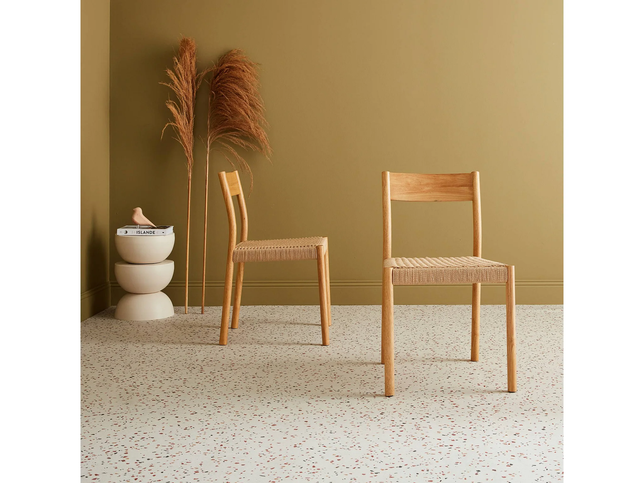 Lot de 2 chaises naturelles en bois et cordage. Ella. L 49.5 x P 53 x H 82cm