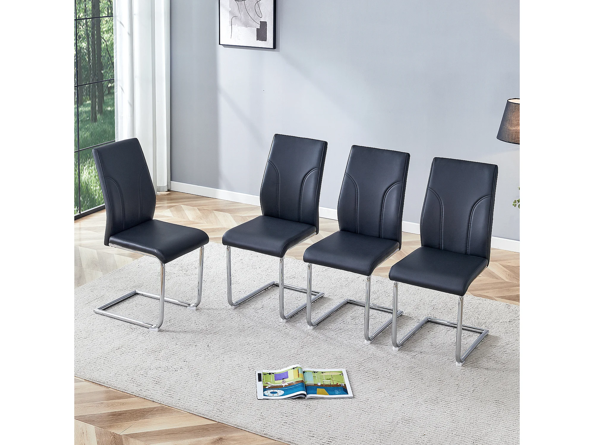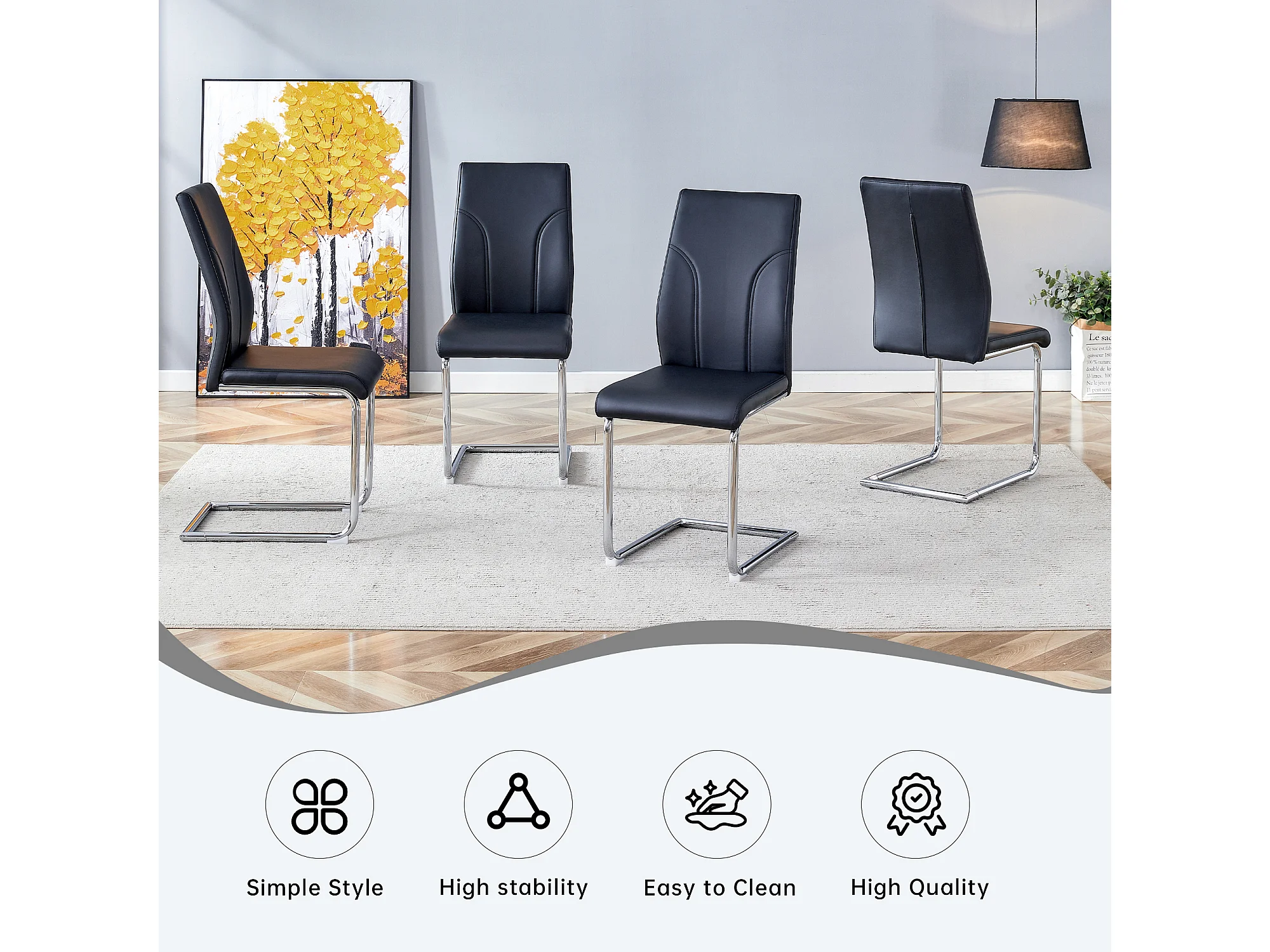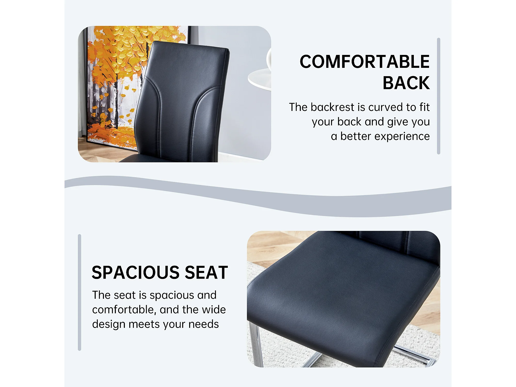 Lot de 2 chaises noire en simili cuir PU - Pieds en métal argenté