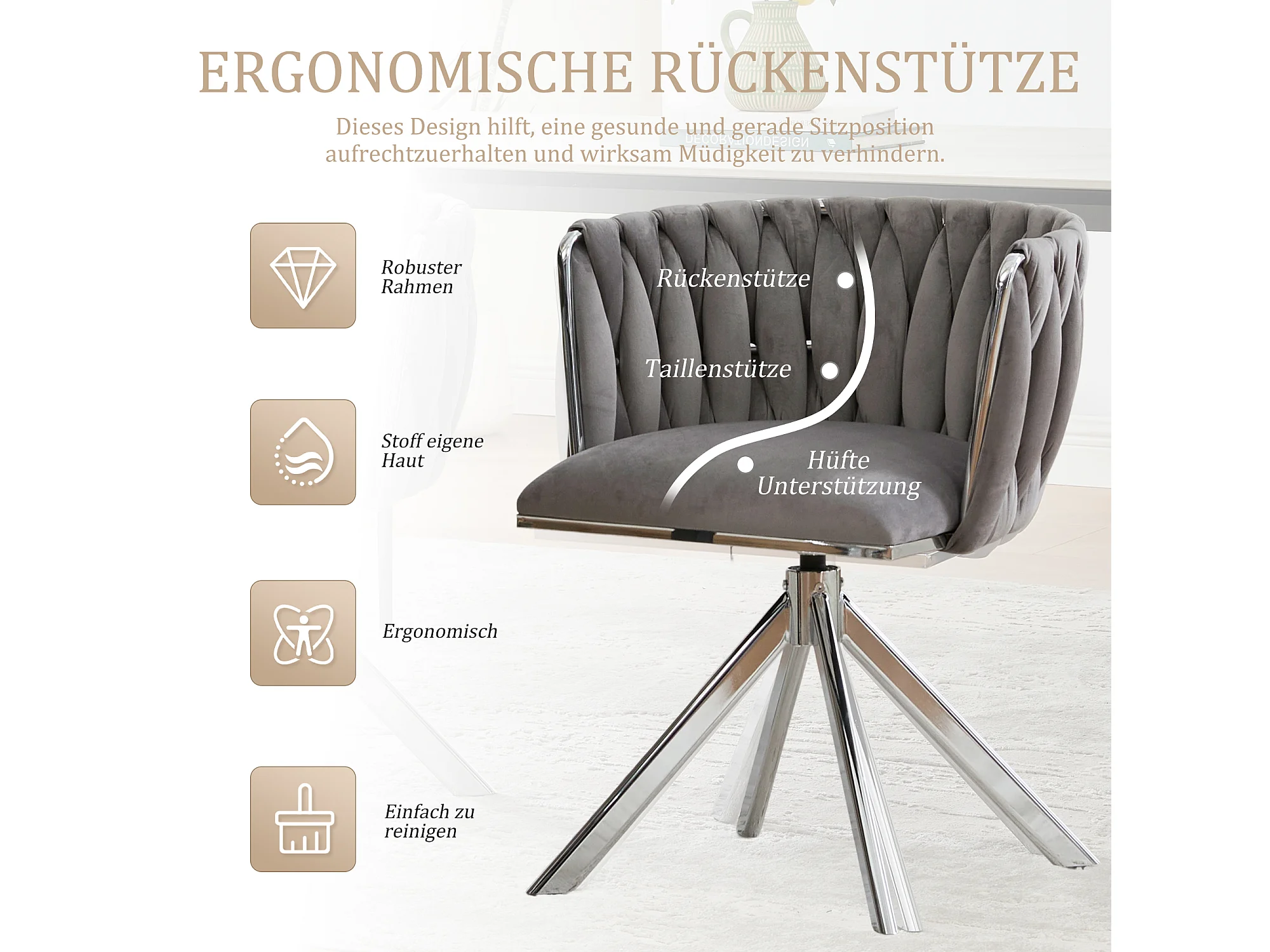 Lot de 2 Chaises pivotante grises - Chaise coquillage avec pieds en métal argenté - Style contemporain