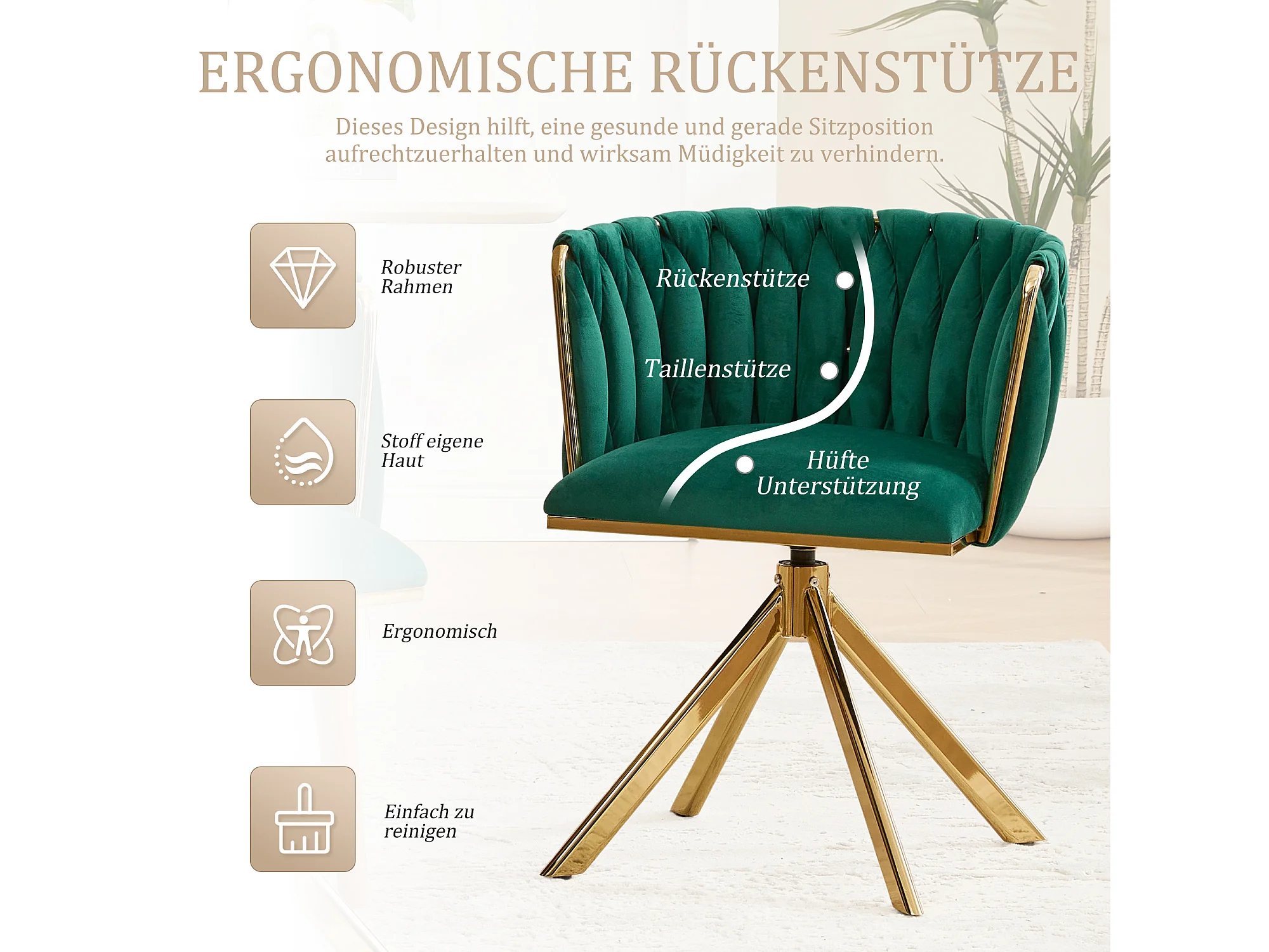 Lot de 2 Chaises pivotante vertes - Chaise coquillage avec pieds en métal doré - Style contemporain
