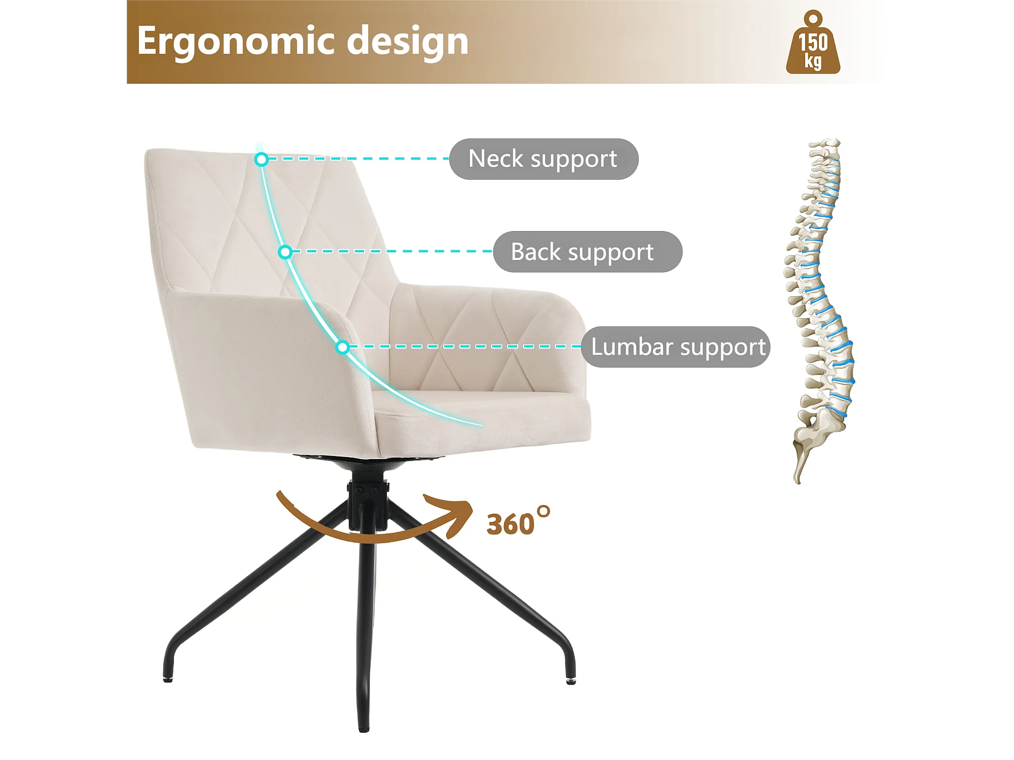 Lot de 2 Chaises pivotantes à 360° - tissu en velours - dossier à de motif losange - Beige