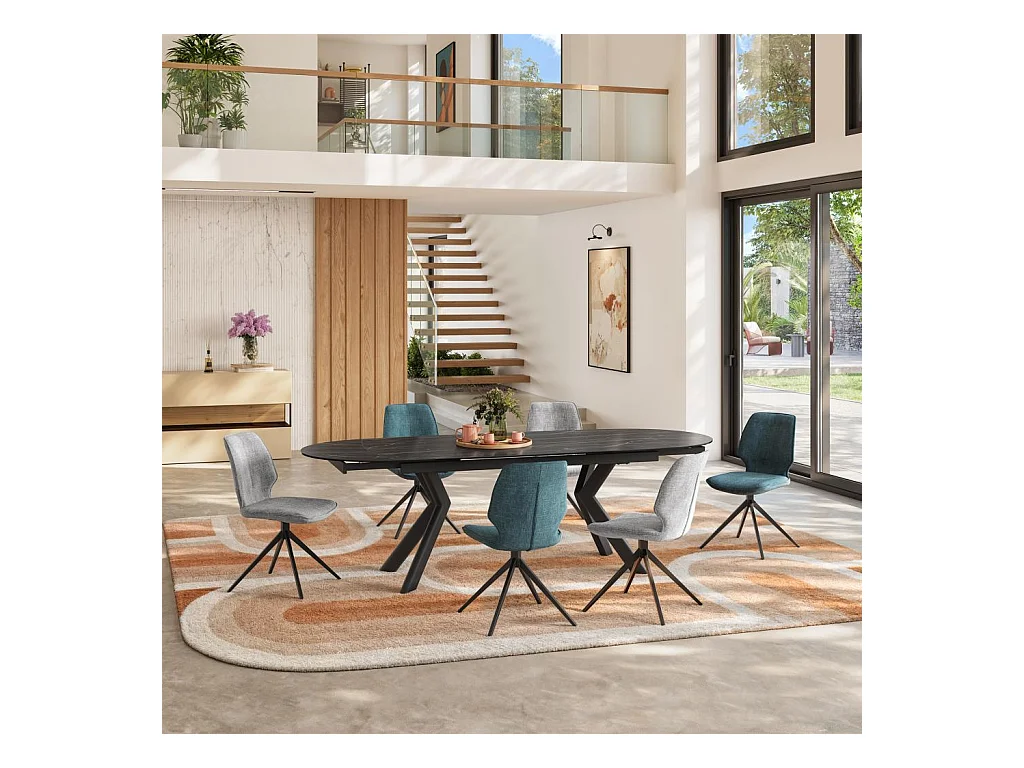 Habitat - Lot de 2 chaises pivotantes en tissu chenille et métal noir - Bleu canard - Vince