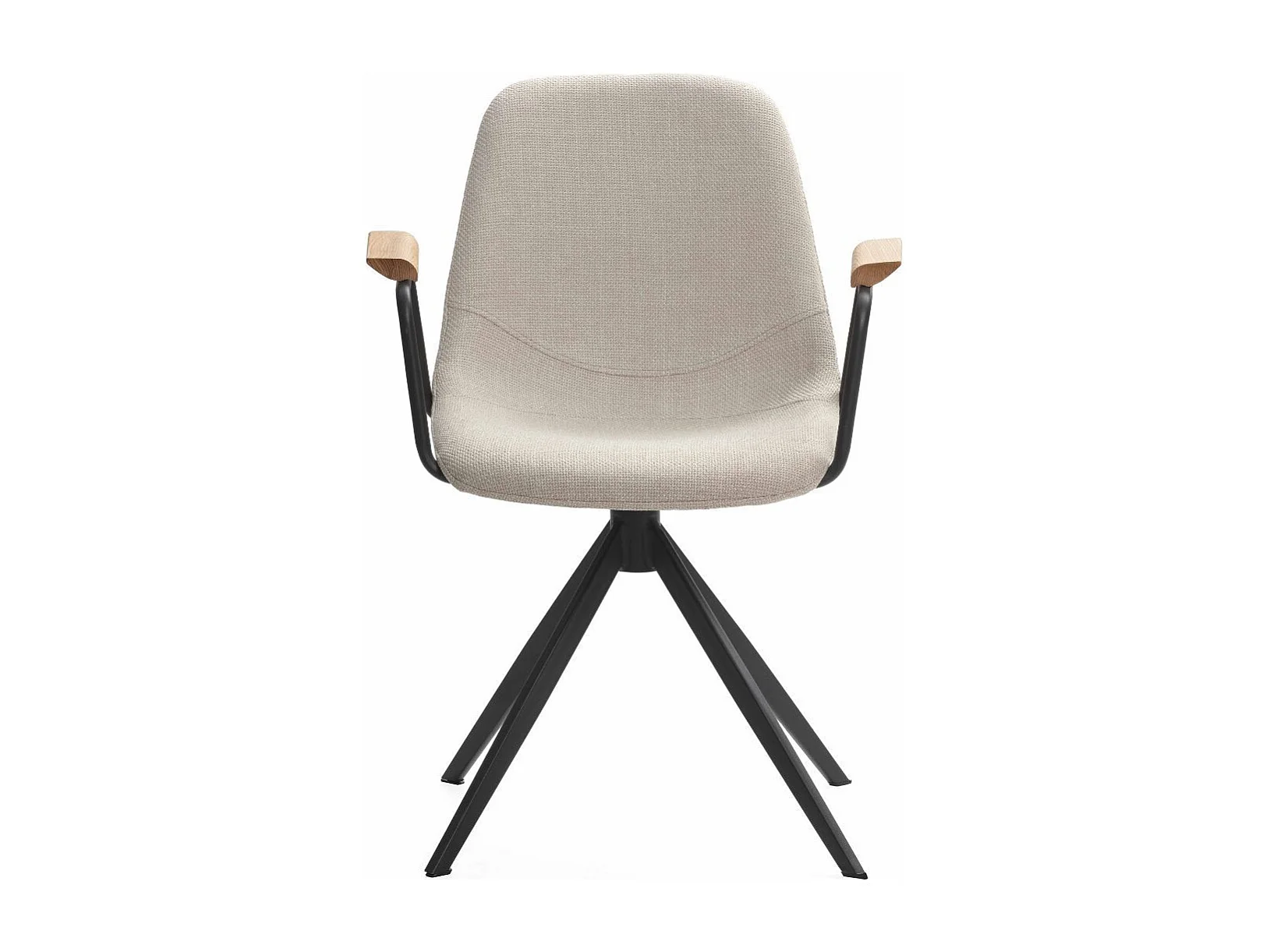 Lot de 2 chaises pivotantes en tissu maillé beige avec piètement métal laqué noir et accoudoirs - THALIA