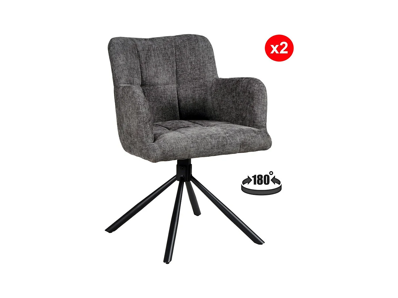 Lot de 2 chaises pivotantes de salle à manger MILA/ Gris foncé