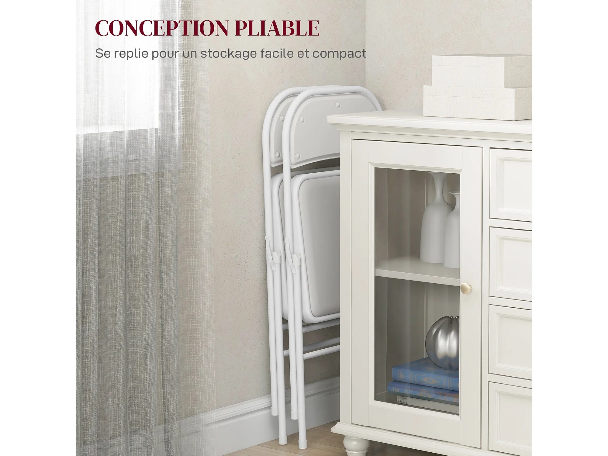Lot de 2 chaises pliantes assise dossier rembourrés acier synthétique blanc