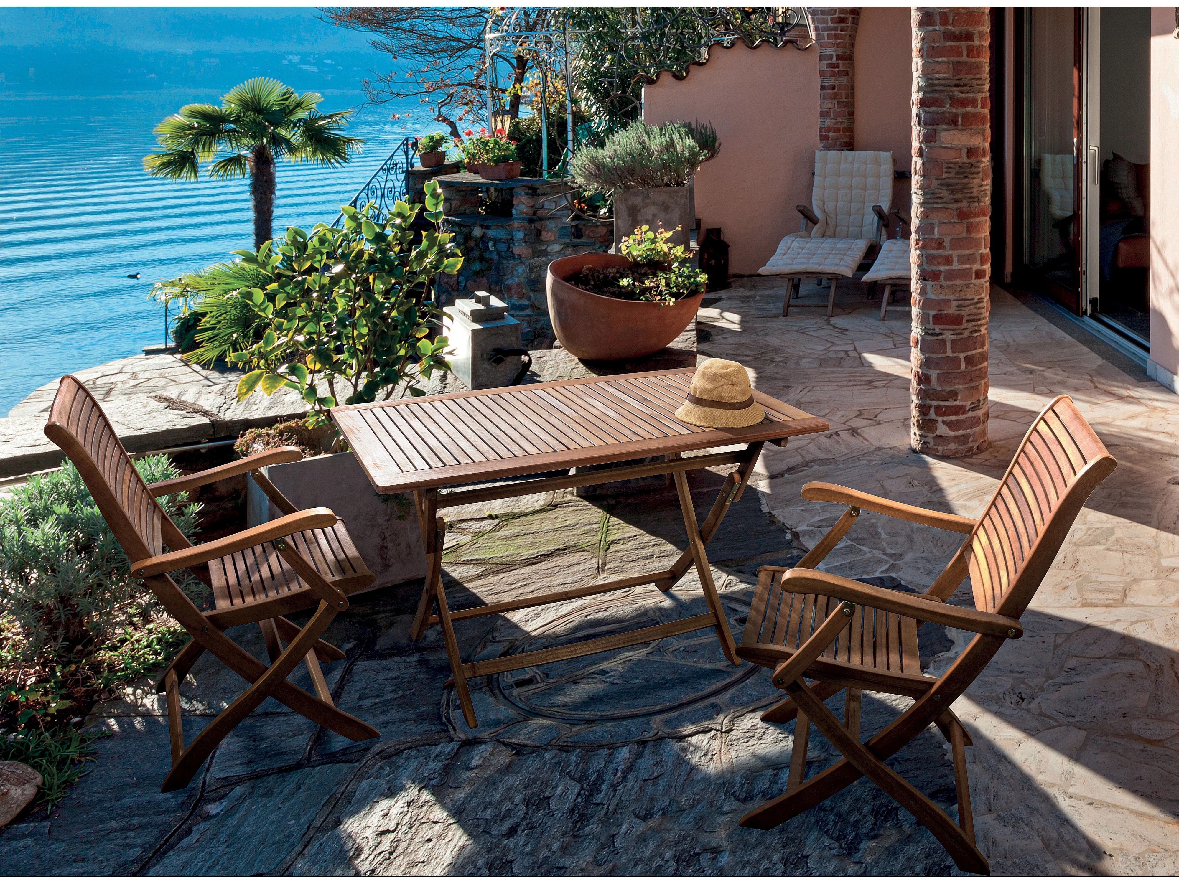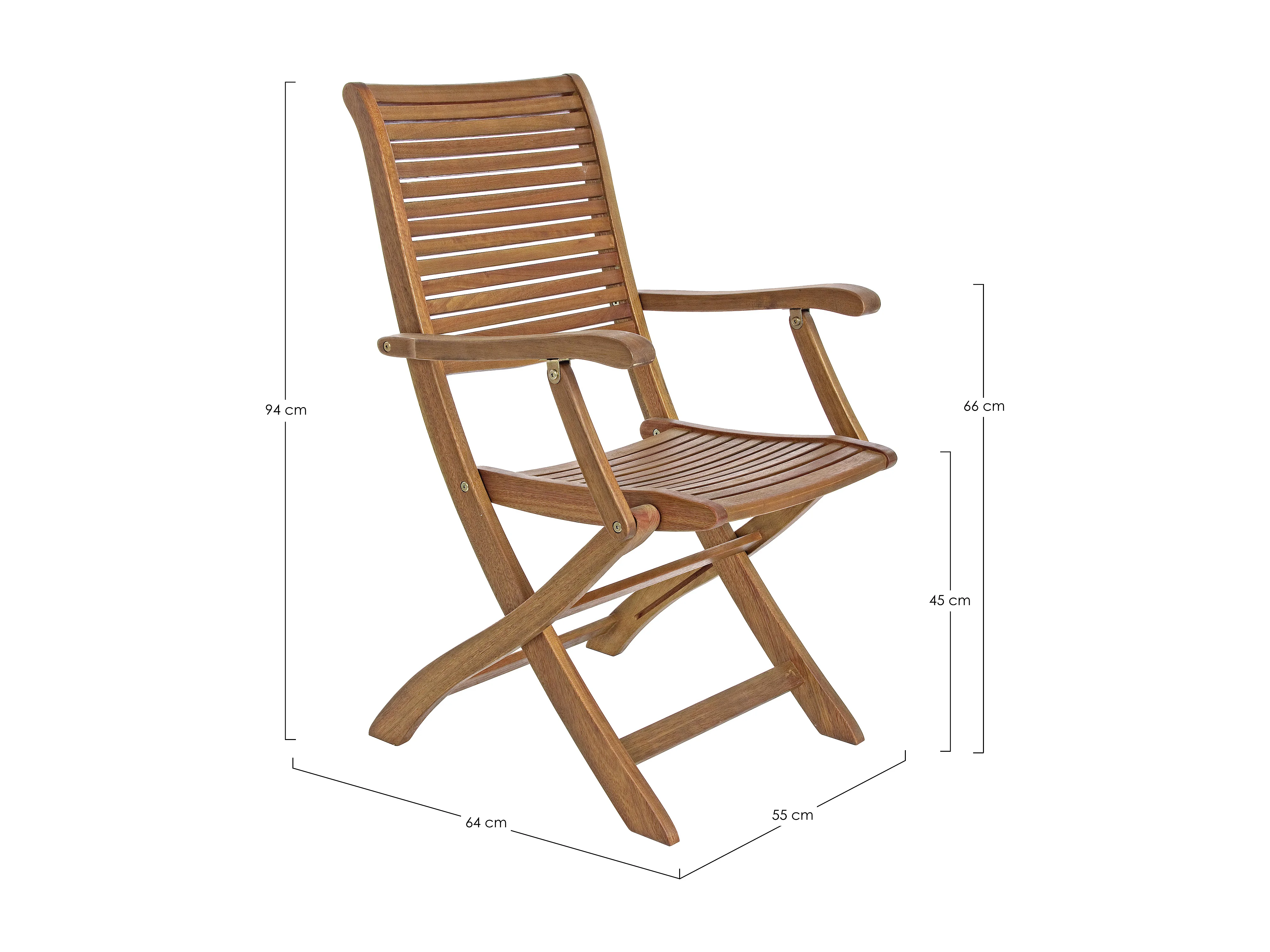 Lot de 2 chaises pliantes d’extérieur NOEMI avec accoudoirs – bois d’acacia huilé