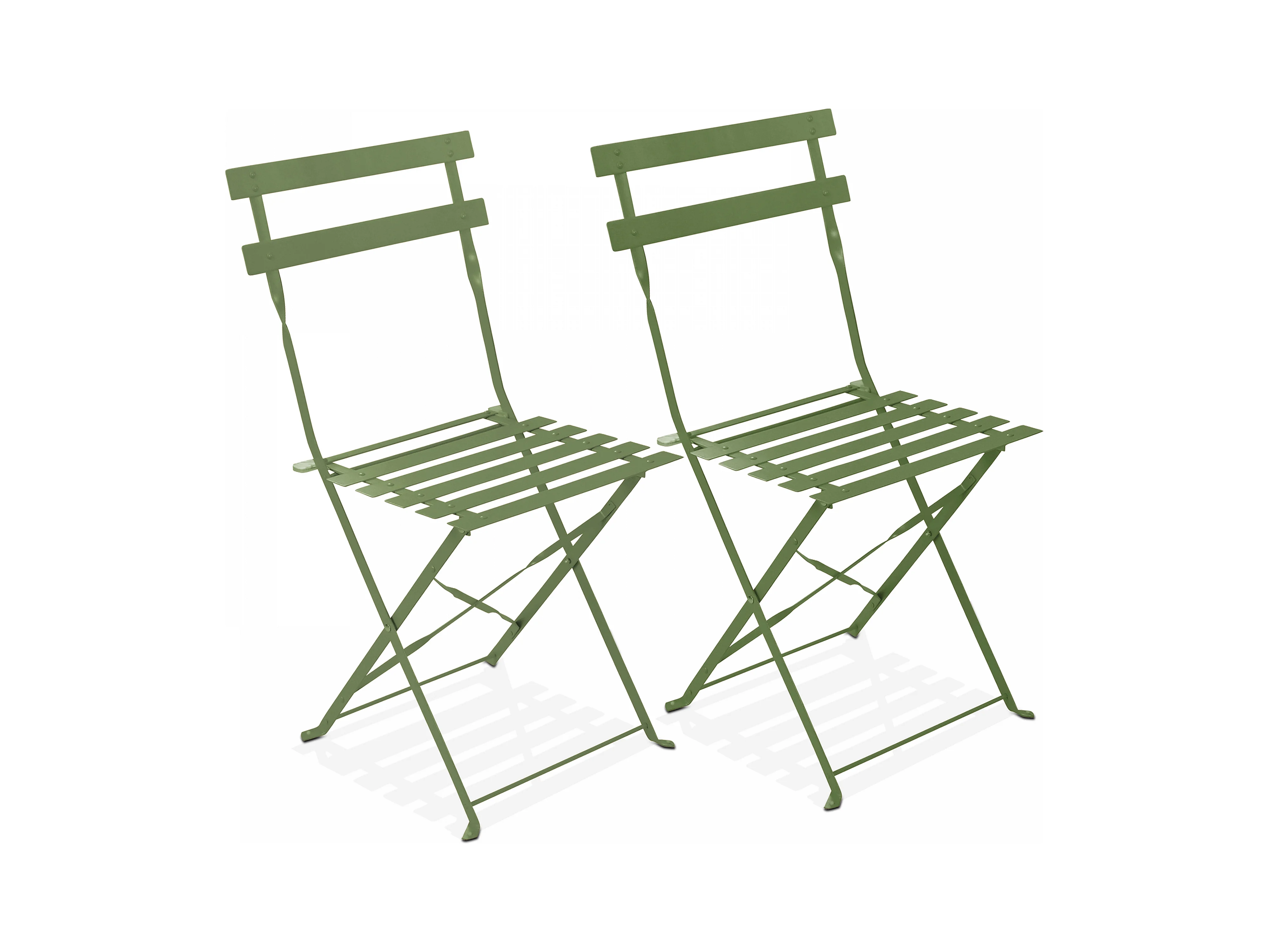 Lot de 2 chaises de jardin bistrot pliables en acier thermolaqué. 49.5 x 41 x 80.5cm