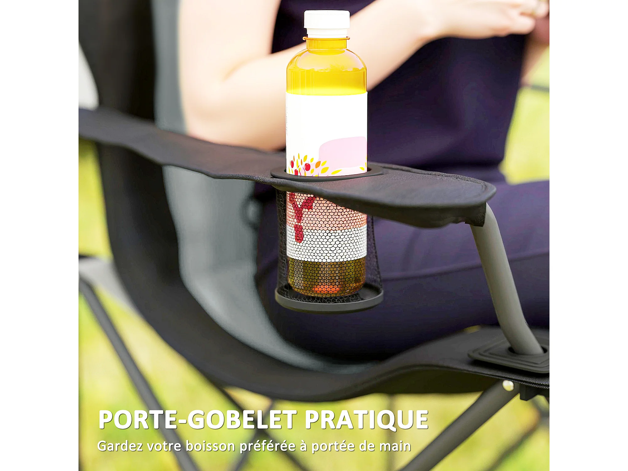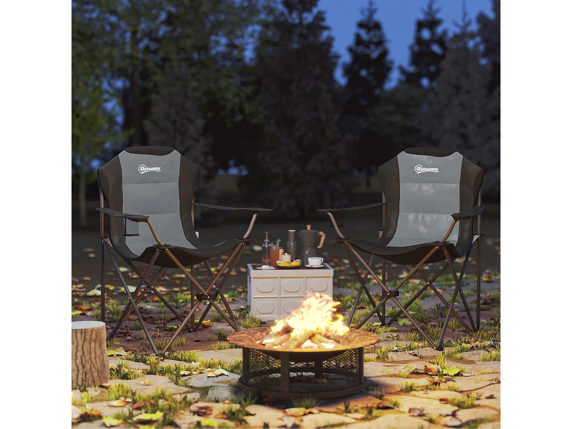 Lot de 2 chaises pliantes rembourrées de camping - porte-gobelet - gris
