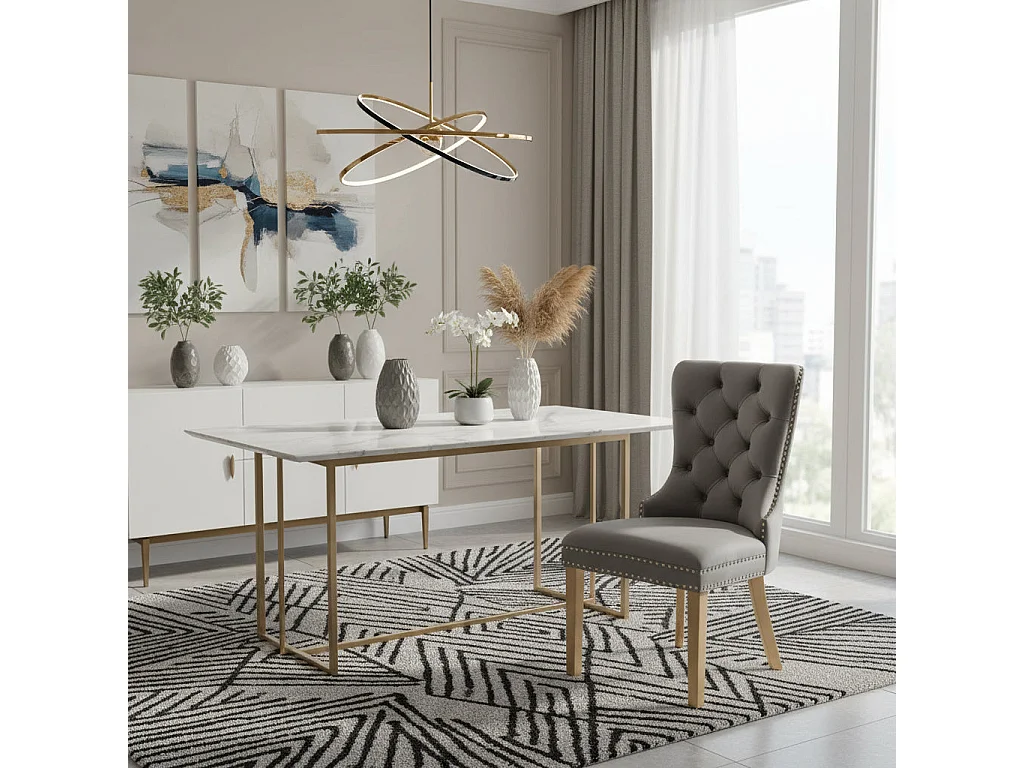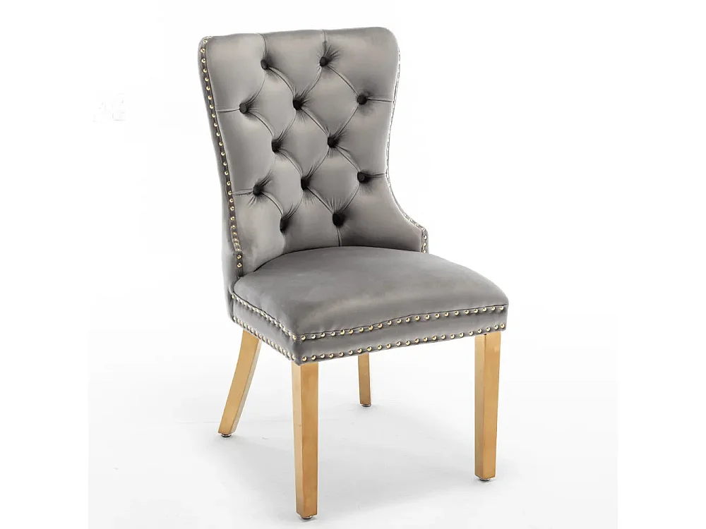 Lot 2 Chaises Salle à Manger Poignée Rectangulaire Cloutées Velours Anthracite Pieds Gold 54x51x102cm
