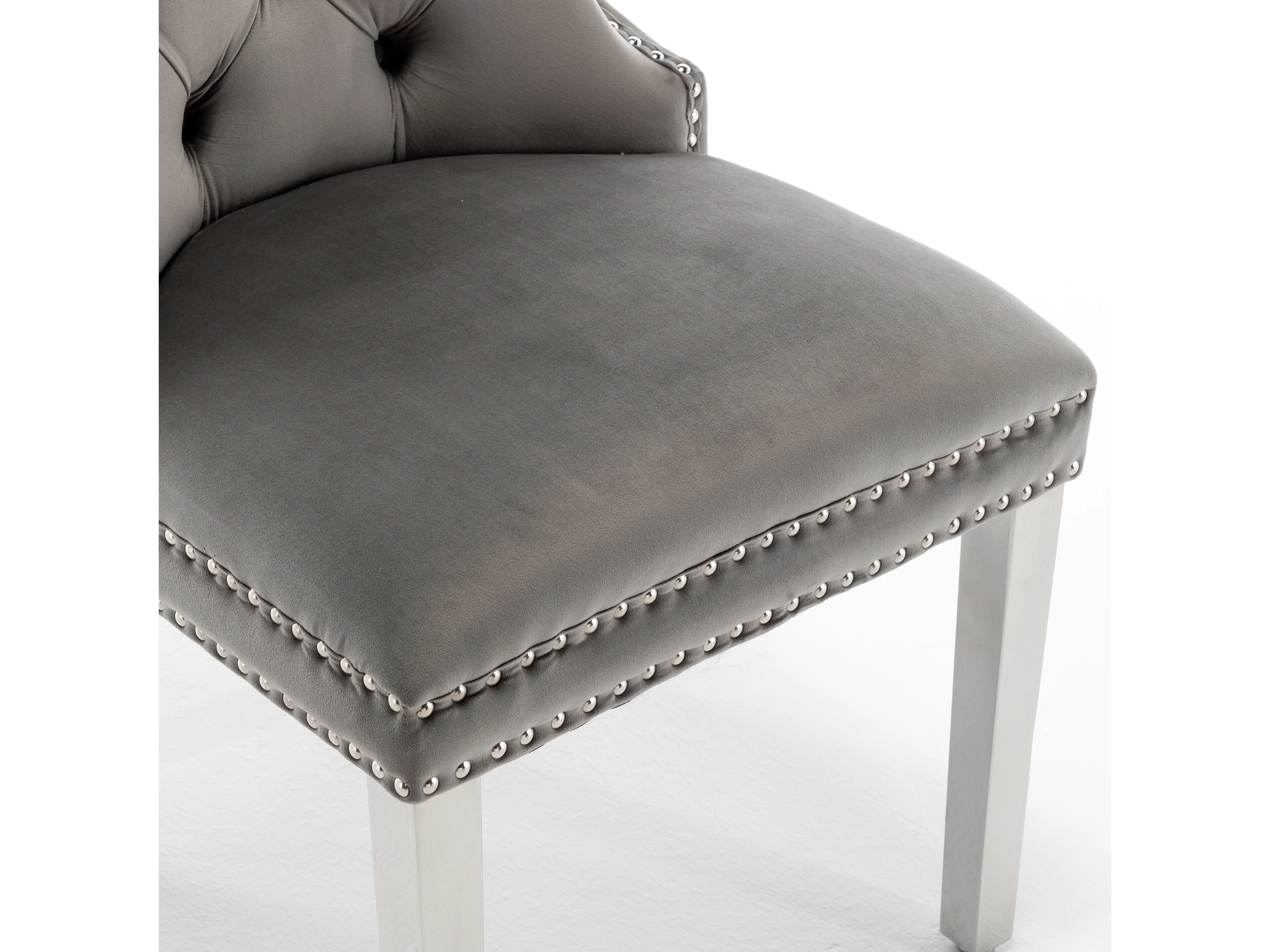Lot de 2 chaises POIGNEE Clouté en velours pied chromé - Gris