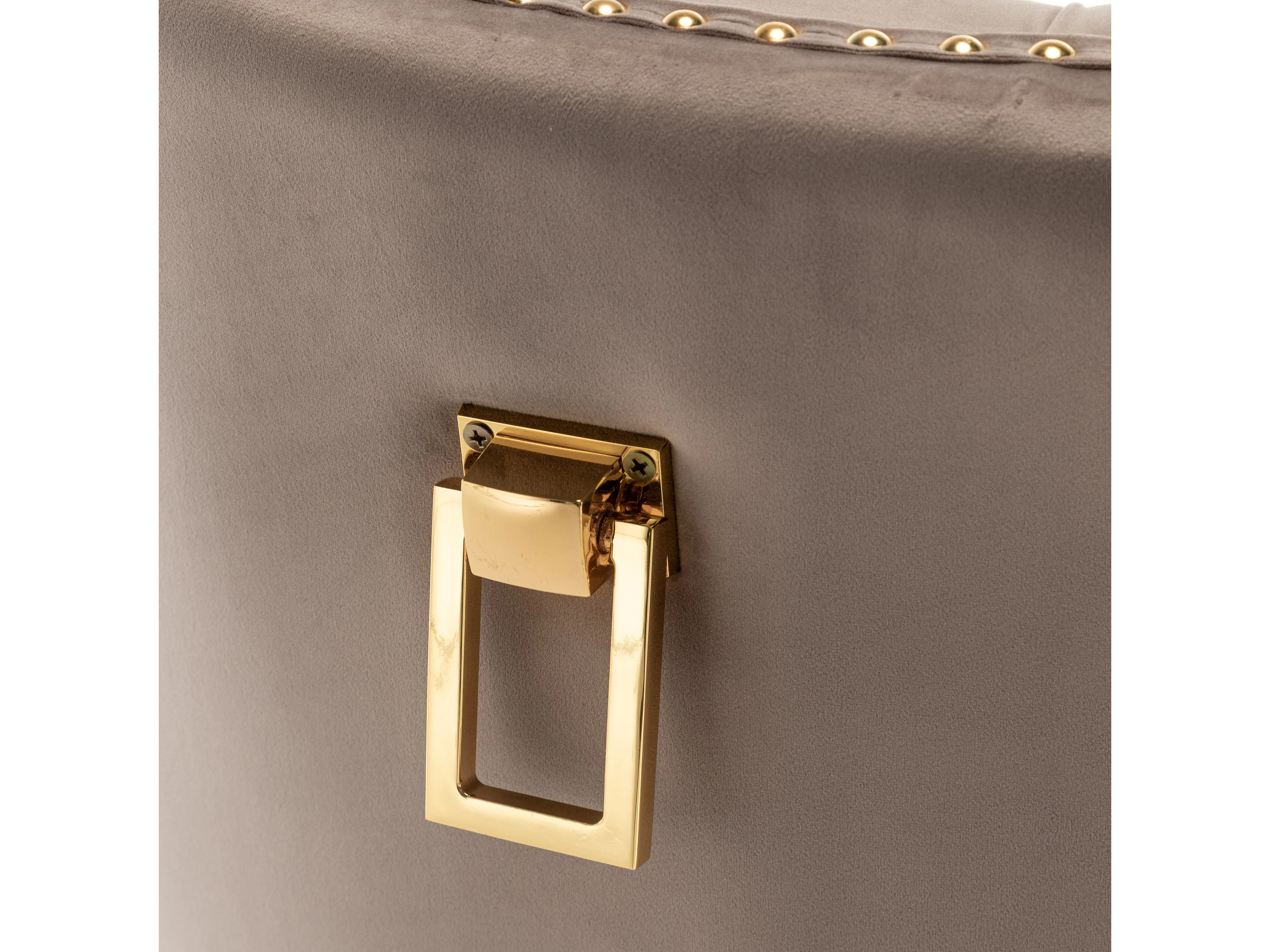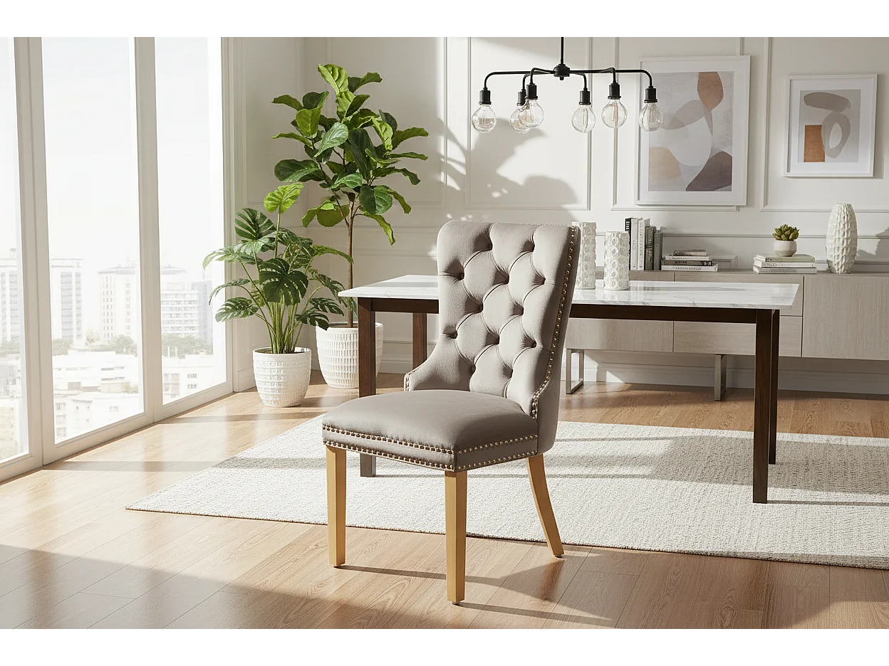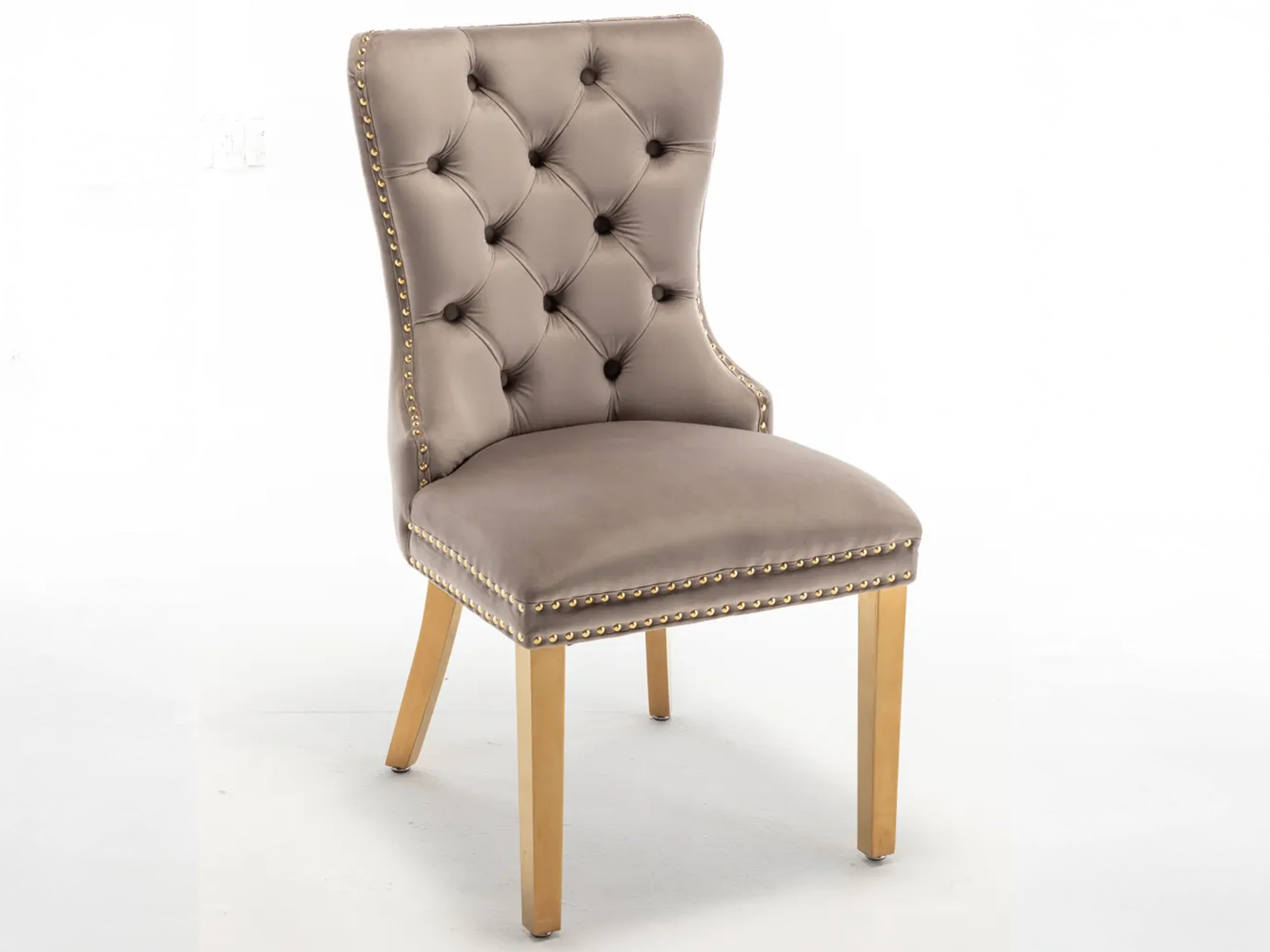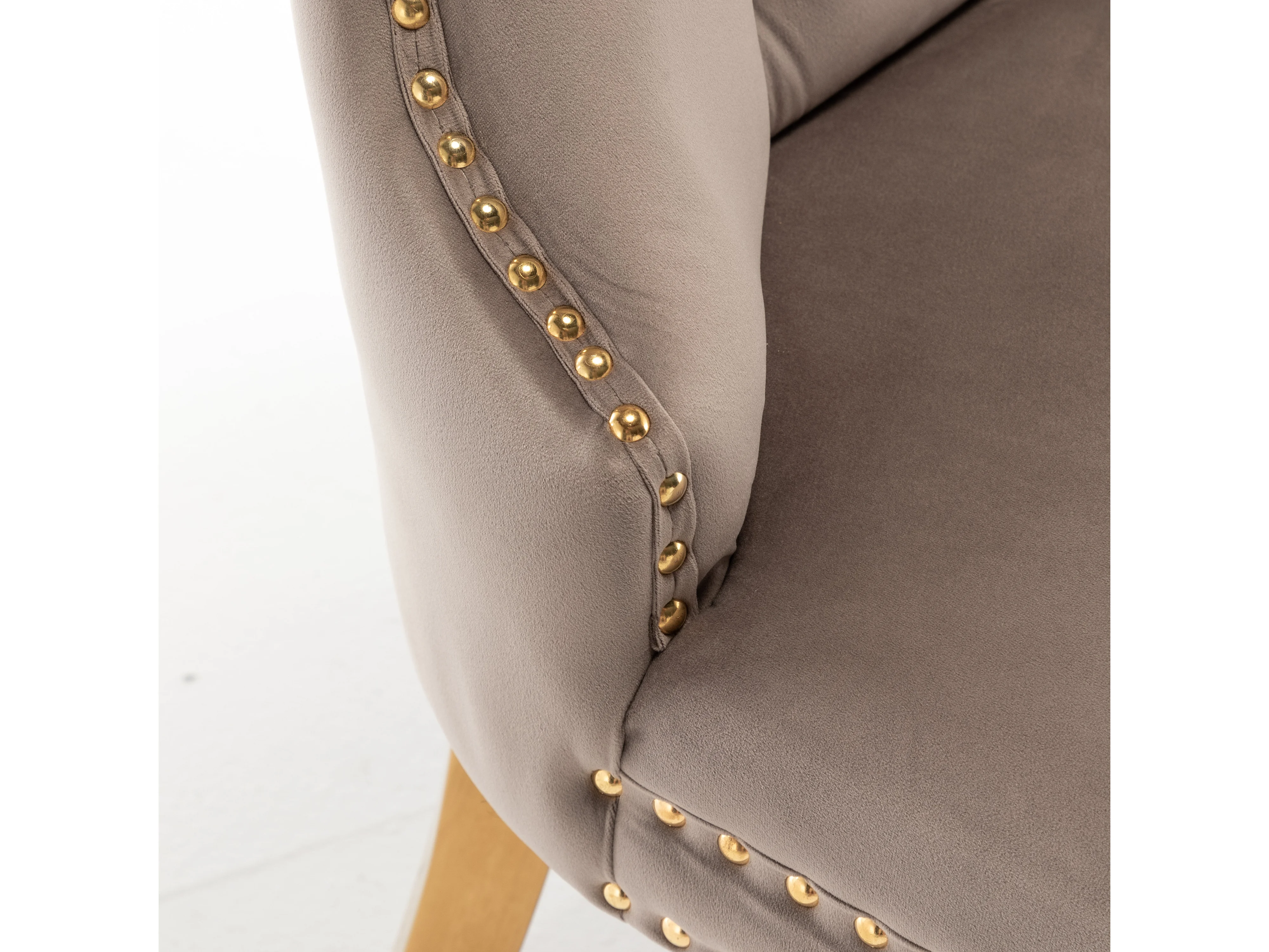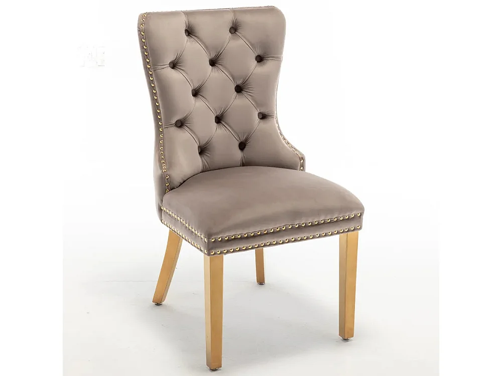 Lot 2 Chaises Salle à Manger Poignée Rectangulaire Cloutées Velours Moka Pieds Gold 54x51x102cm
