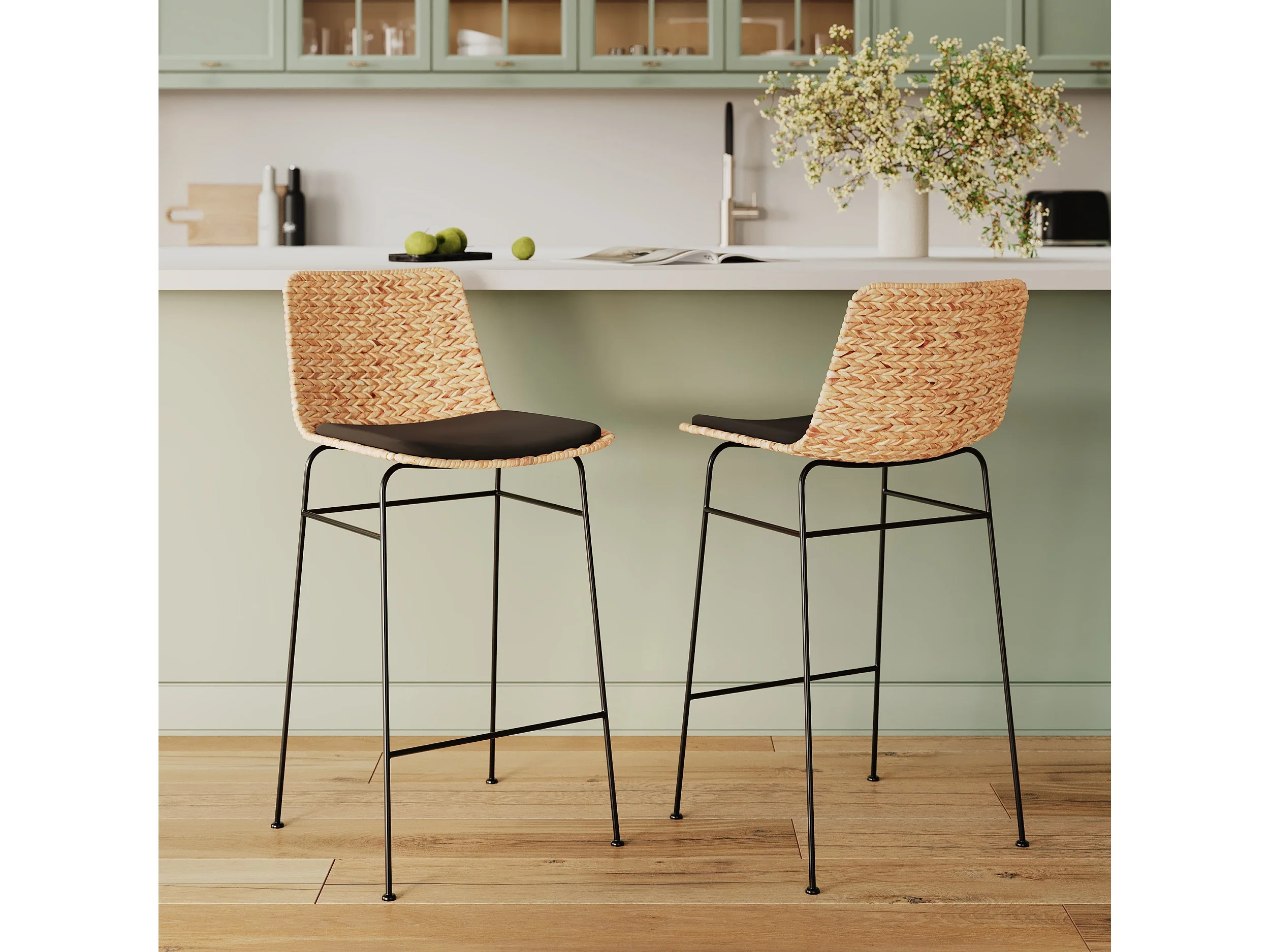 Lot de 2 chaises pour îlot central 66 cm en matière naturelle et noir - Faro