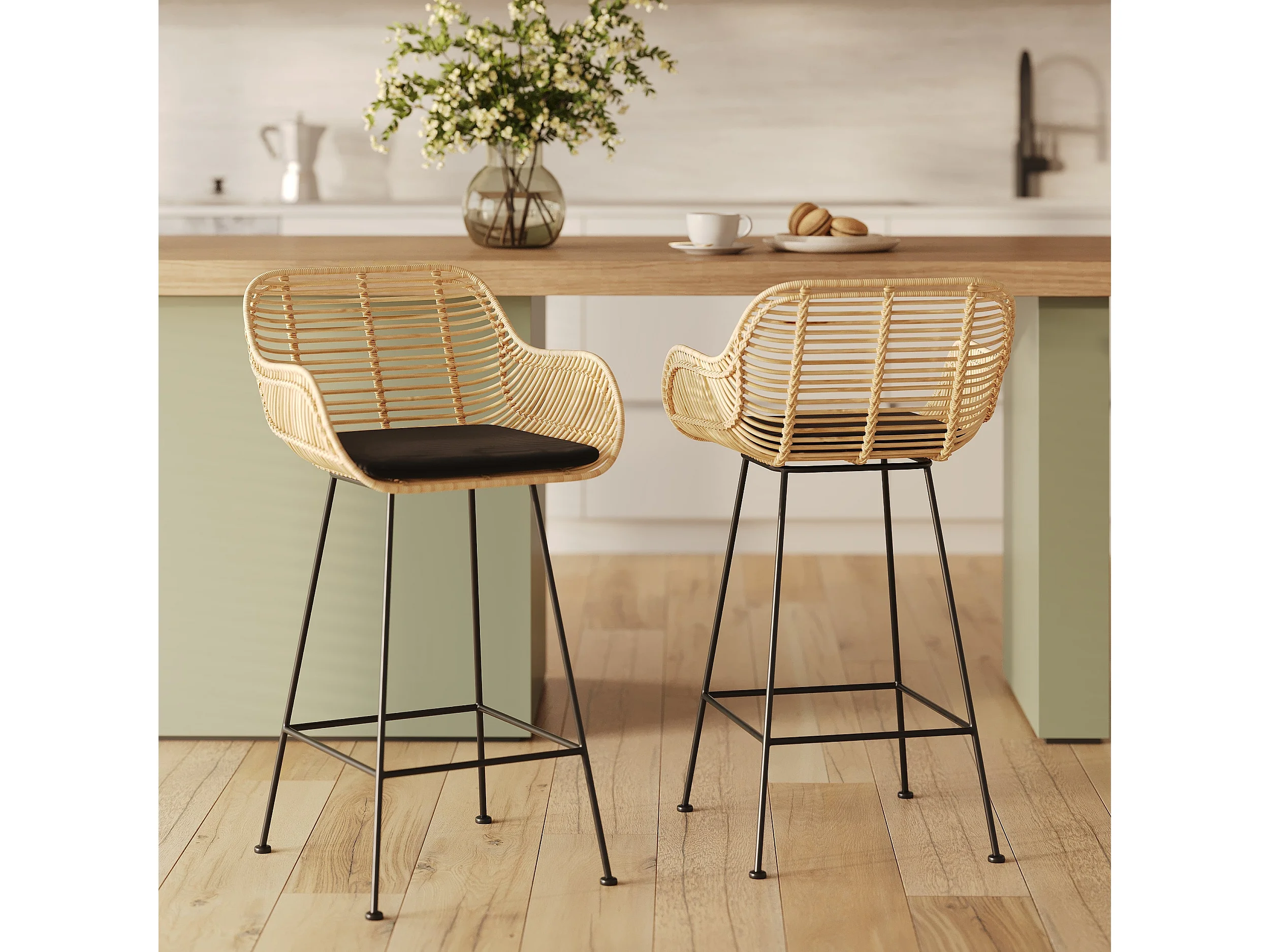 Lot de 2 chaises pour îlot central 66 cm en rotin et tissu noir - Pops