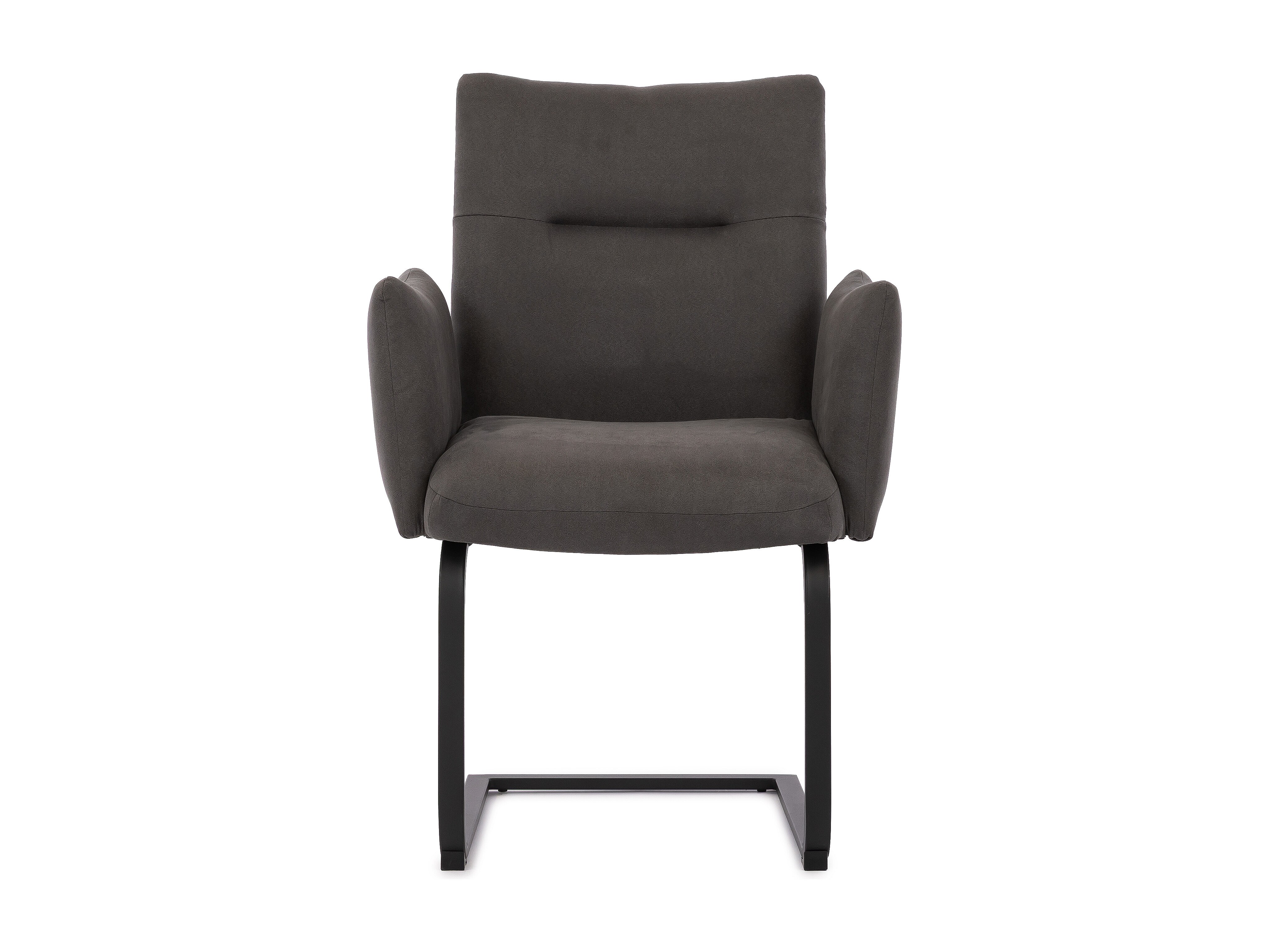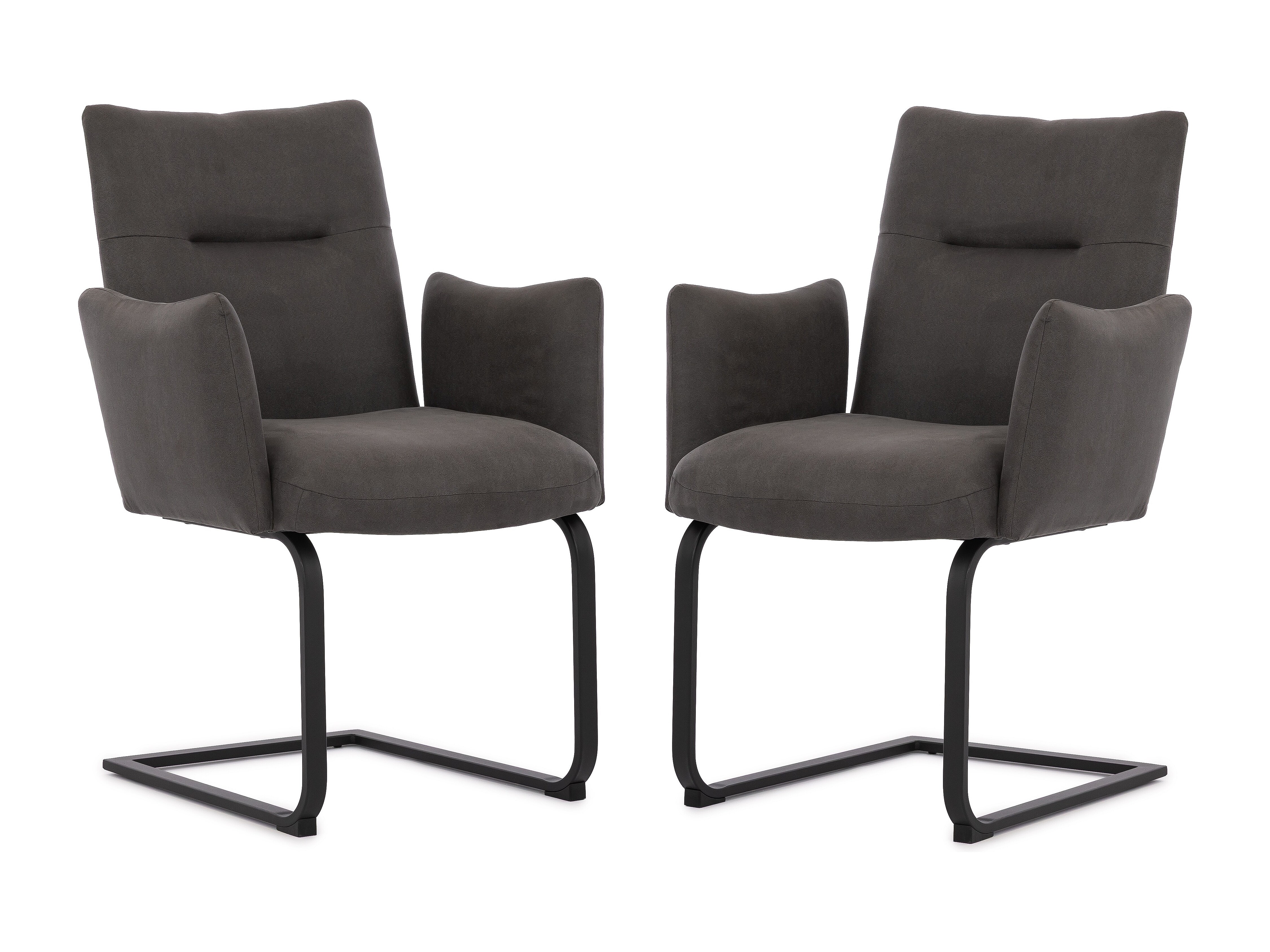 Lot de 2 chaises rembourrées au design moderne, en microfibre anthracite effet vintage, avec accoudoirs et piètement luge en métal noir - Hera