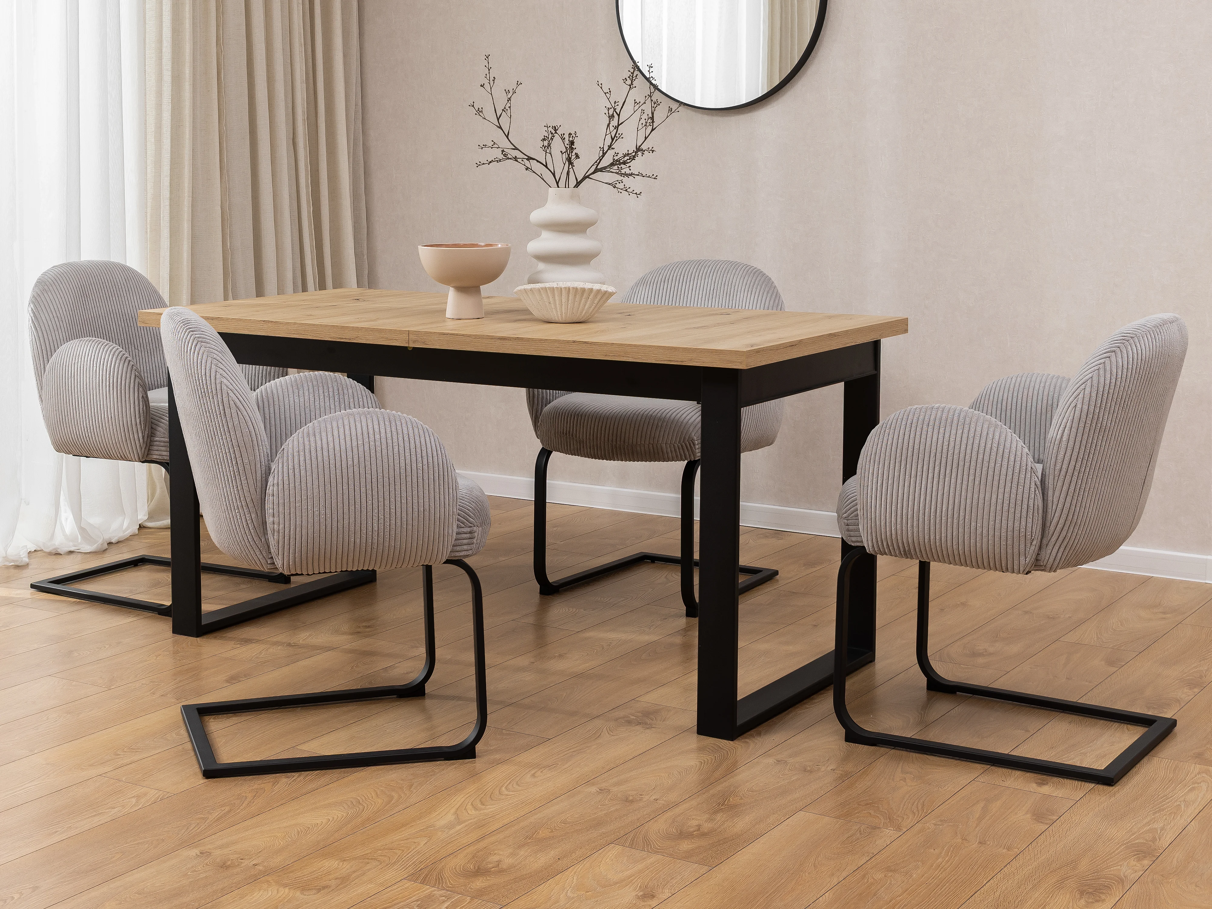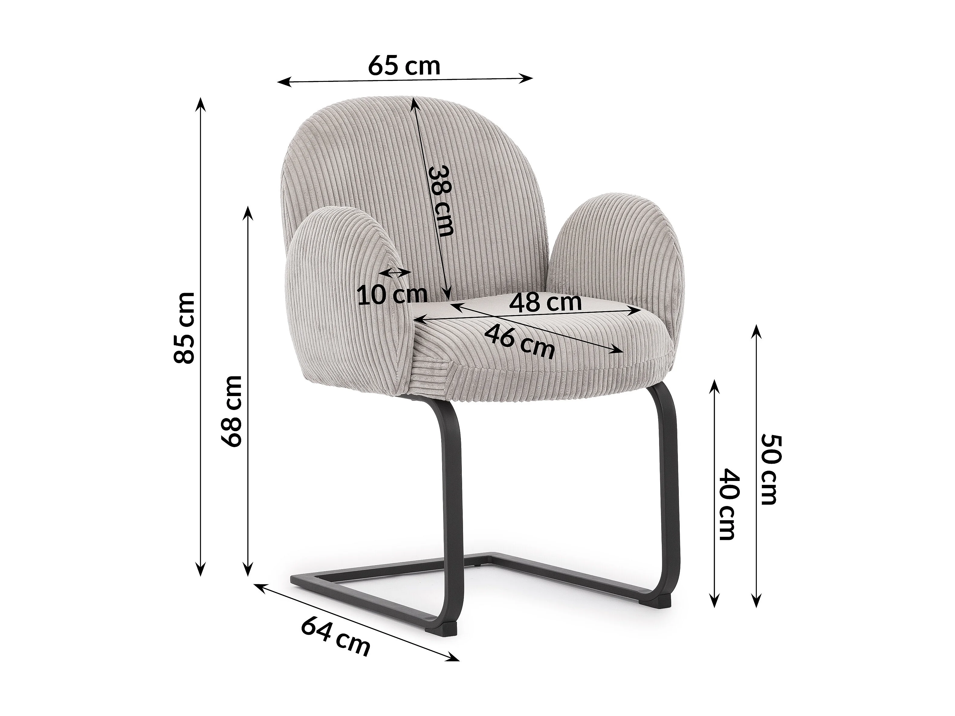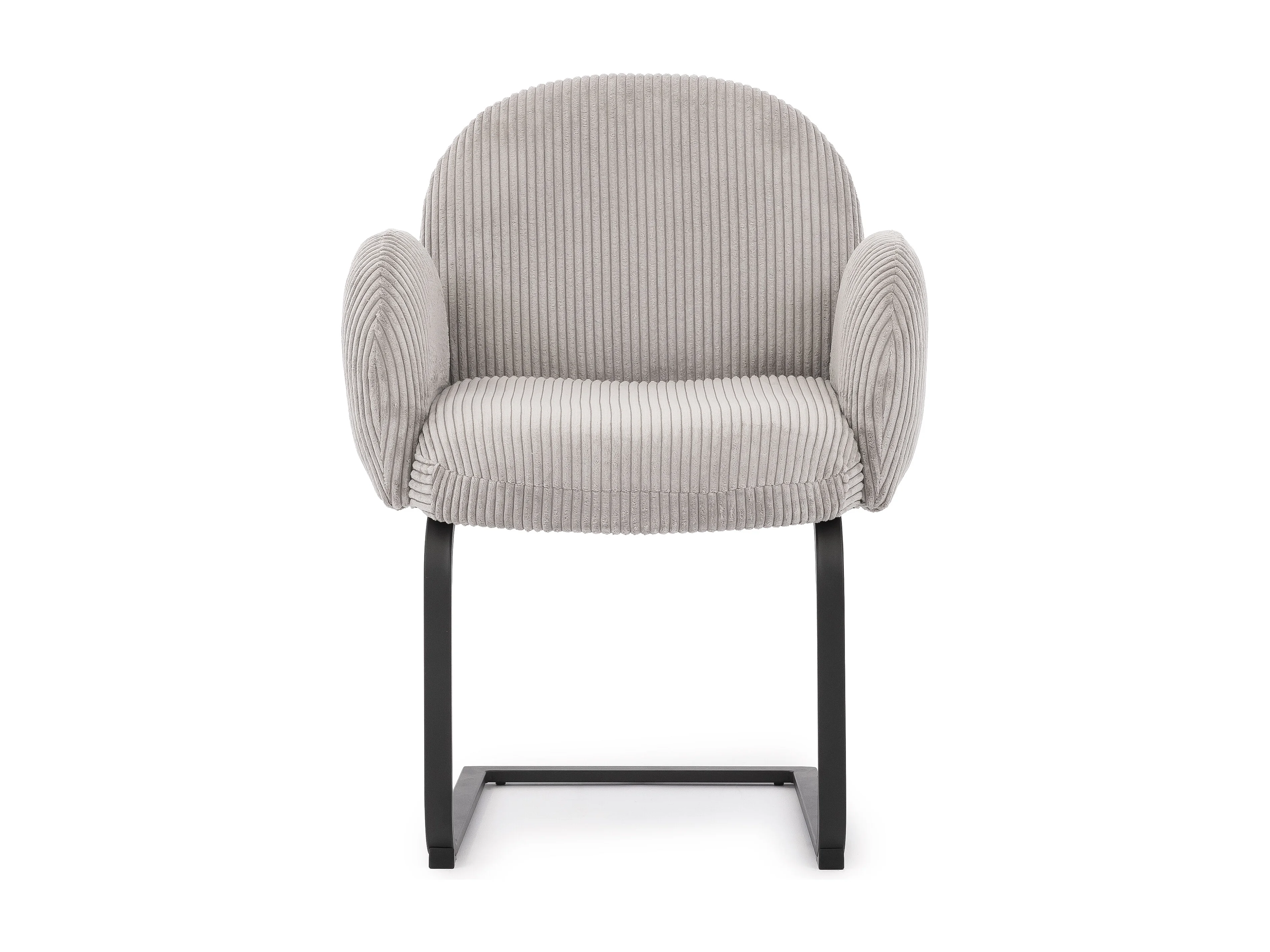 Lot de 2 chaises rembourrées de style Japandi au design arrondi, en velours côtelé gris avec une structure en métal noir - Vela