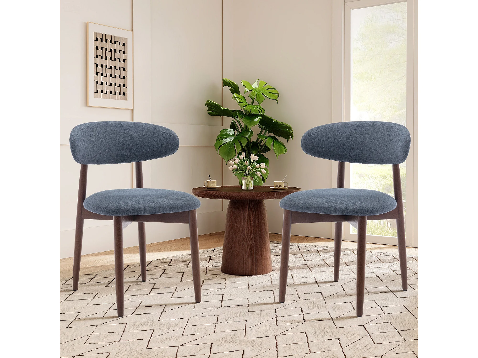 Lot de 2 chaises de salle à manger blue SMARTUE – Pieds en bois massif, dossier incurvé, assise en tissu
