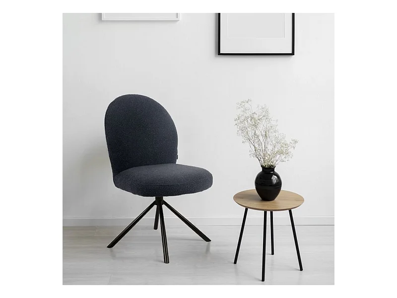 Lot de 2 chaises rotatives 180° en tissu noir et métal noir - JULIEN