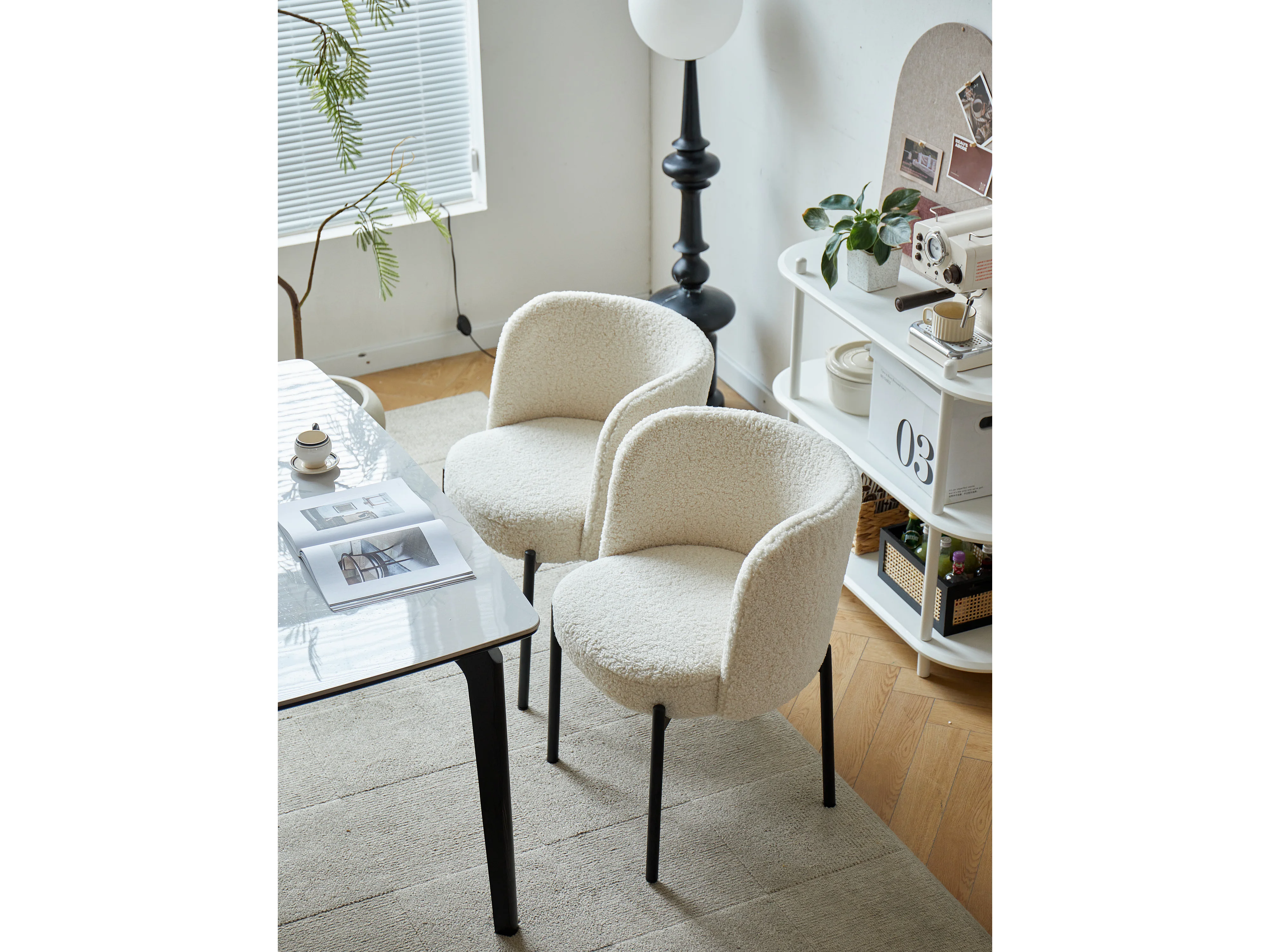 Lot de 2 chaises scandinaves en métal et bouclettes blanc