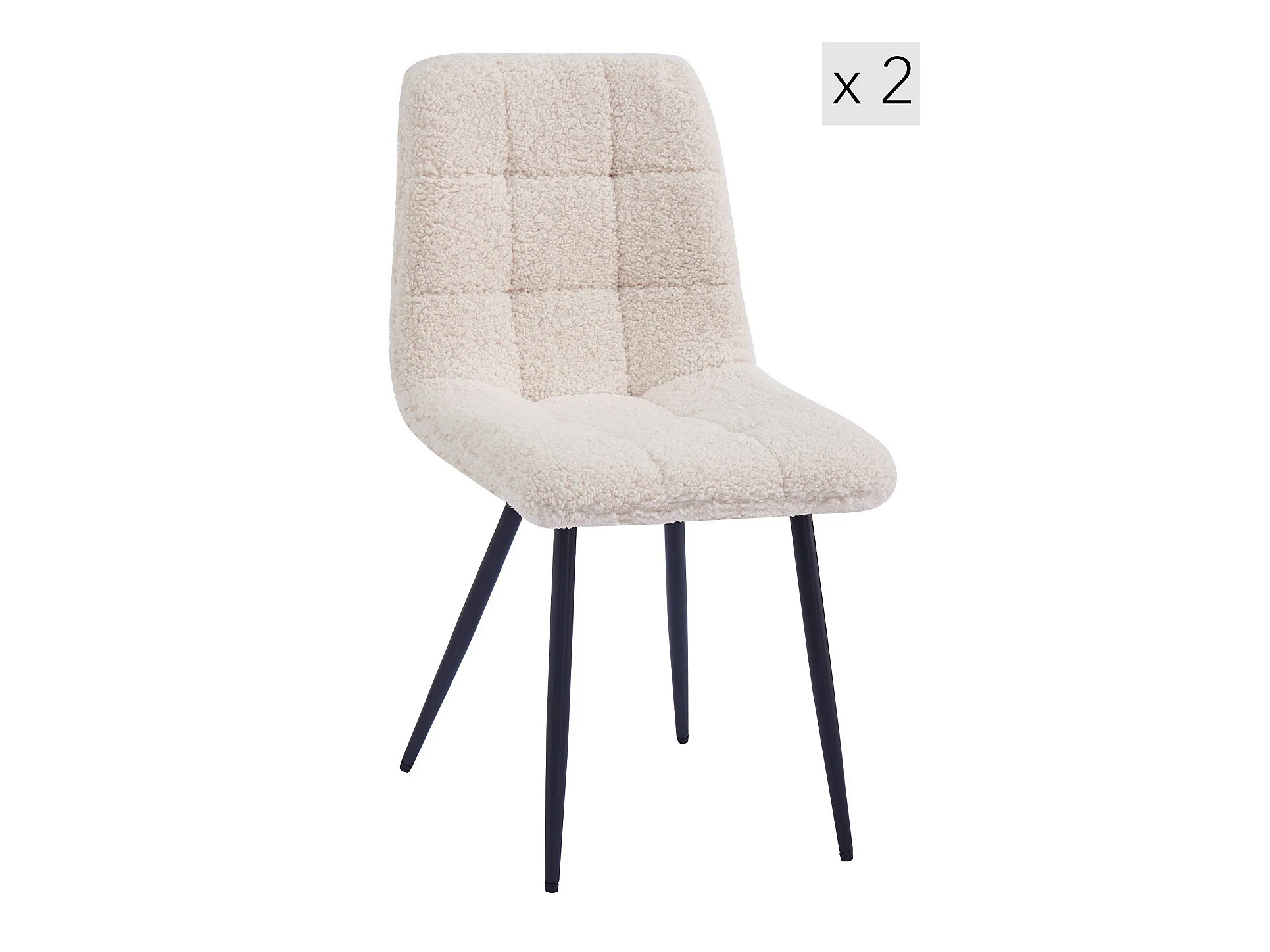 Lot de 2 chaises scandinaves en métal et bouclettes blanches