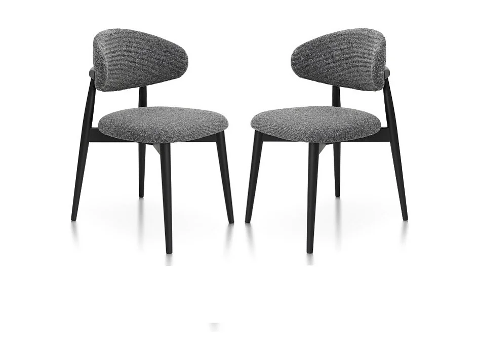Lot de 2 chaises Skandi en bois massif noir et assise en tissu chiné gris
