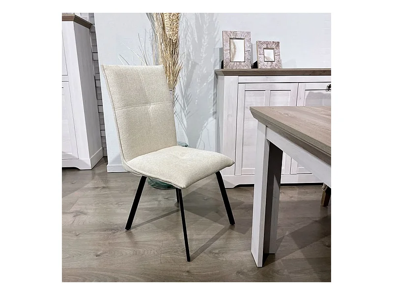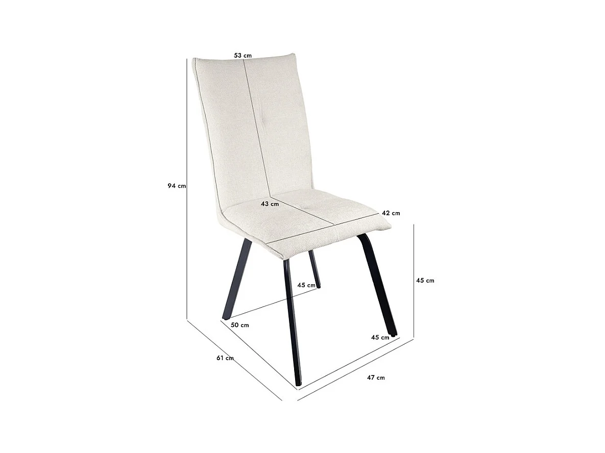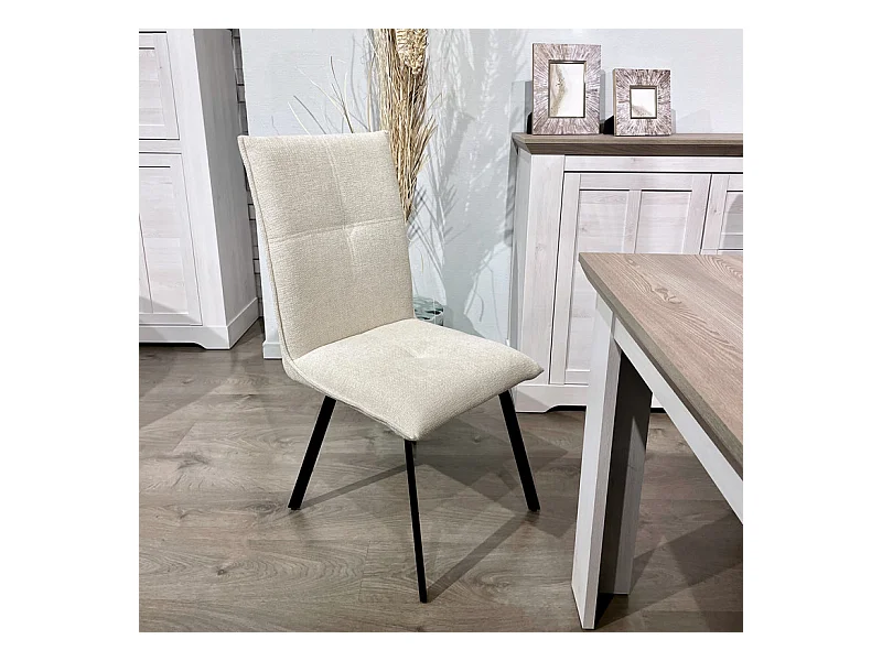 Lot 2 chaises tissu effet maille écru et pieds métal noir – ARIA 2