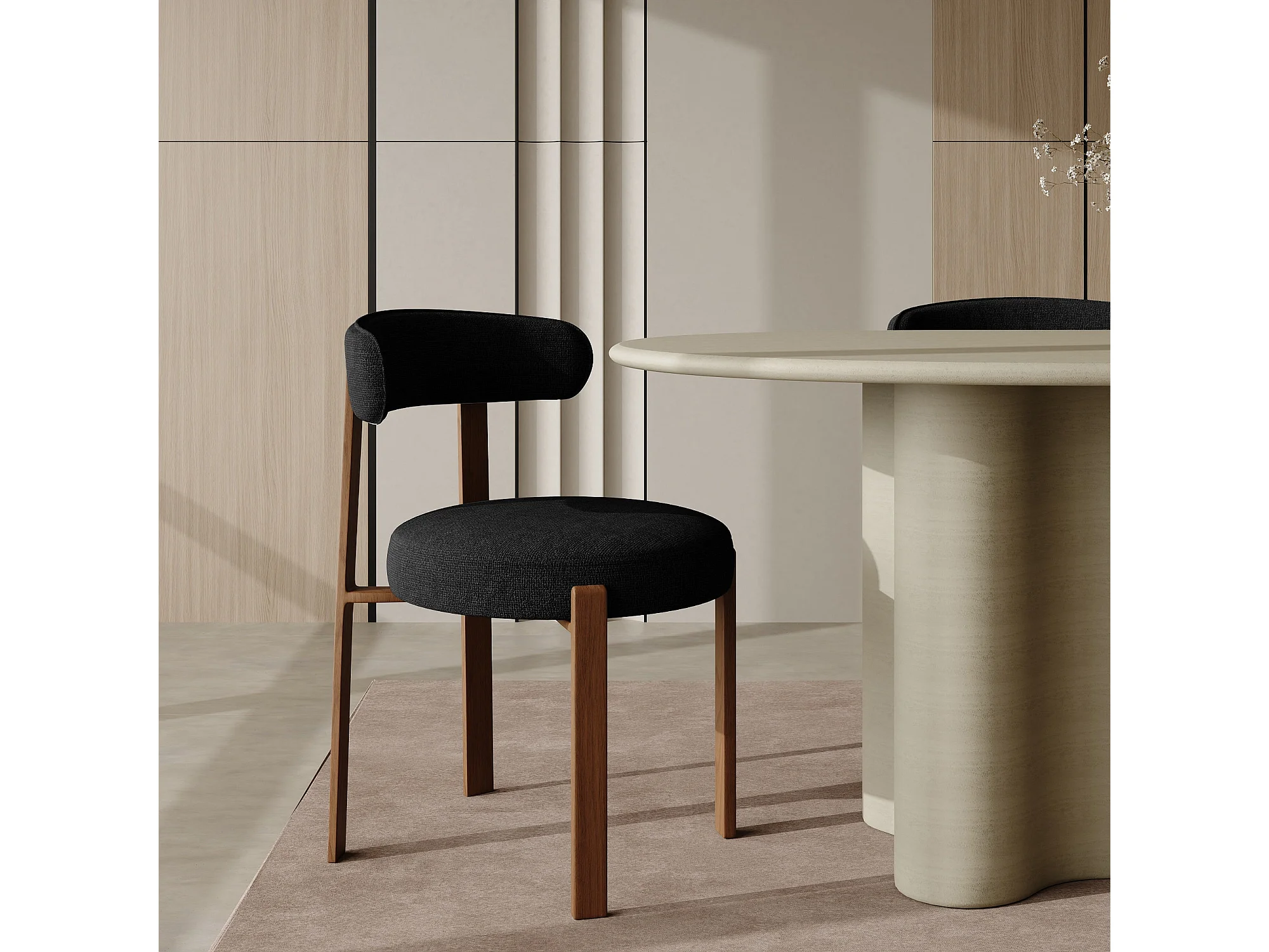 Lot de 2 chaises velours chenillé noir et pieds noyer JUNA