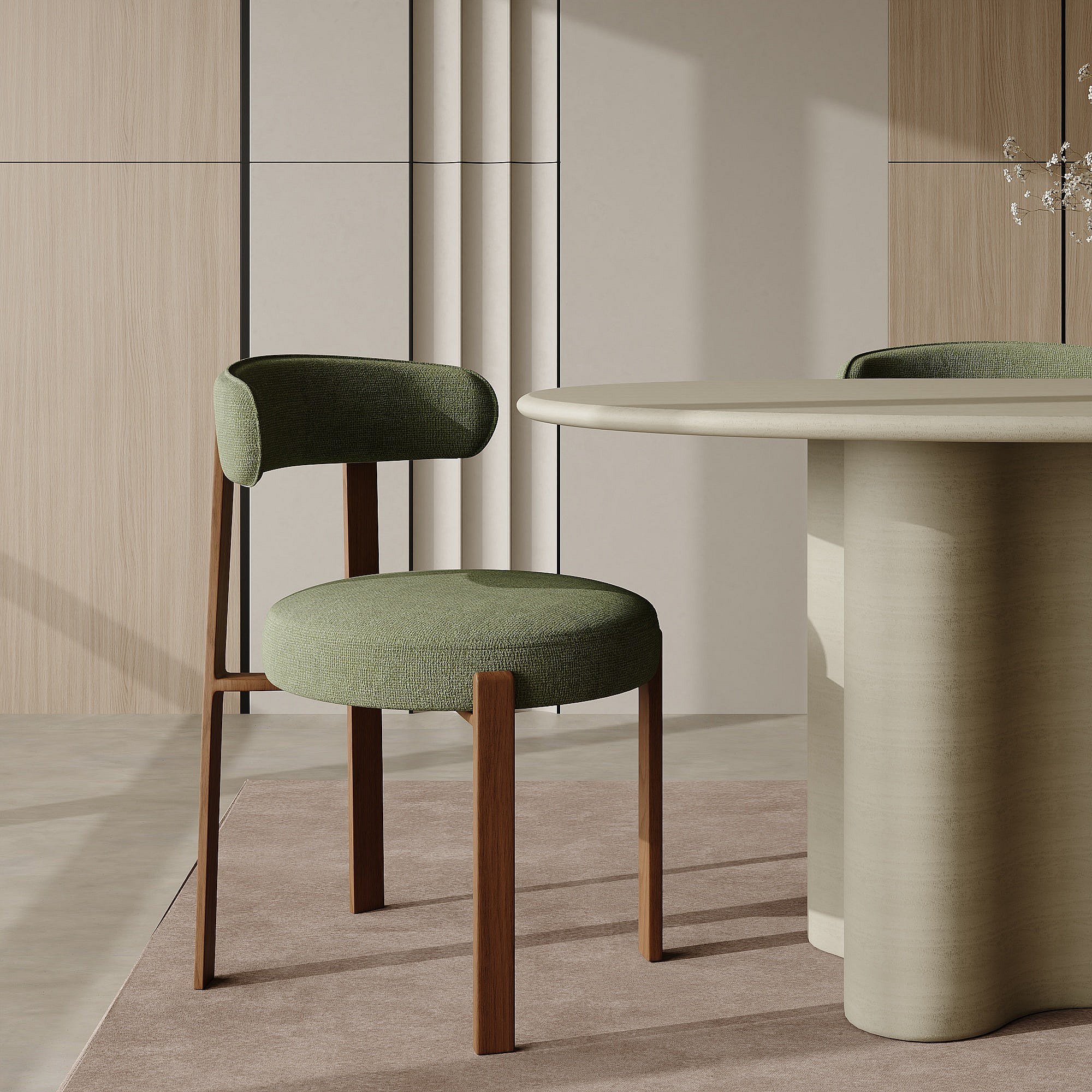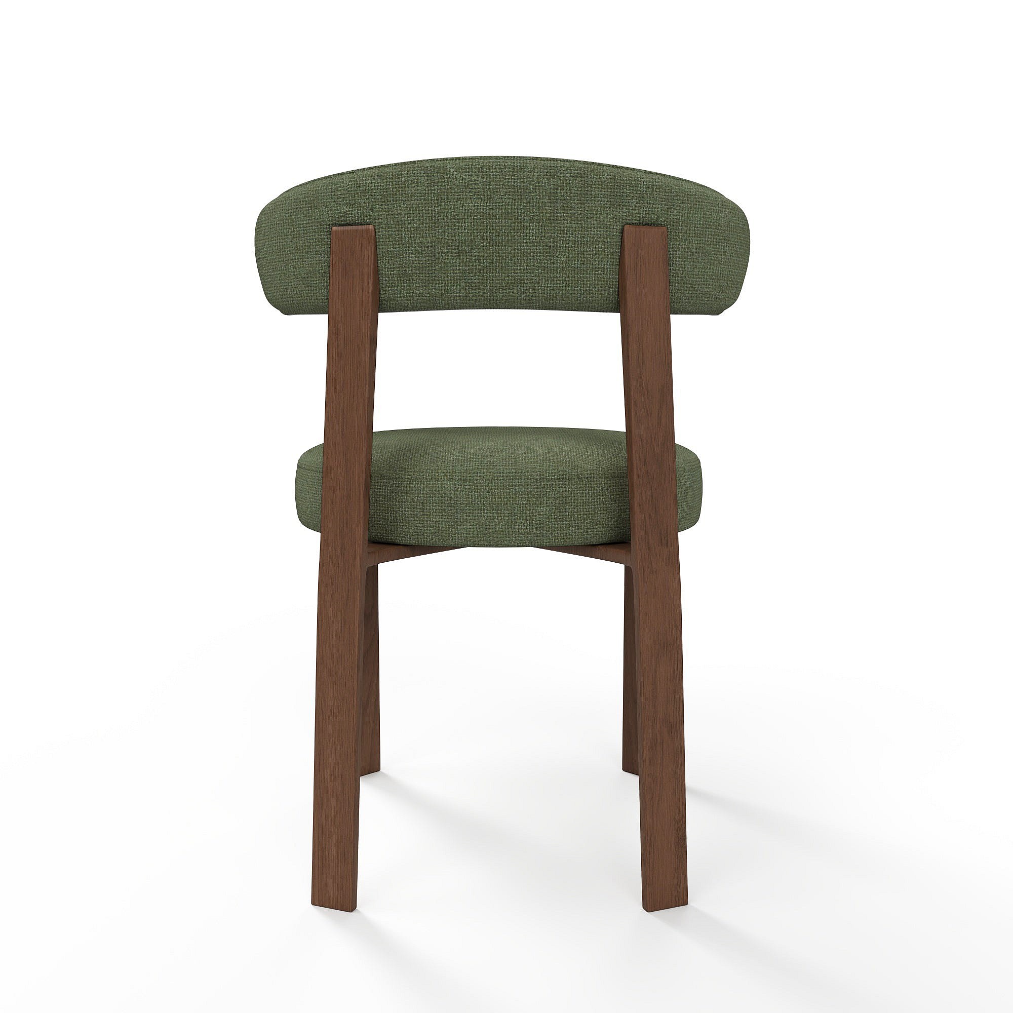 Lot de 2 chaises velours chenillé vert kaki et pieds noyer JUNA