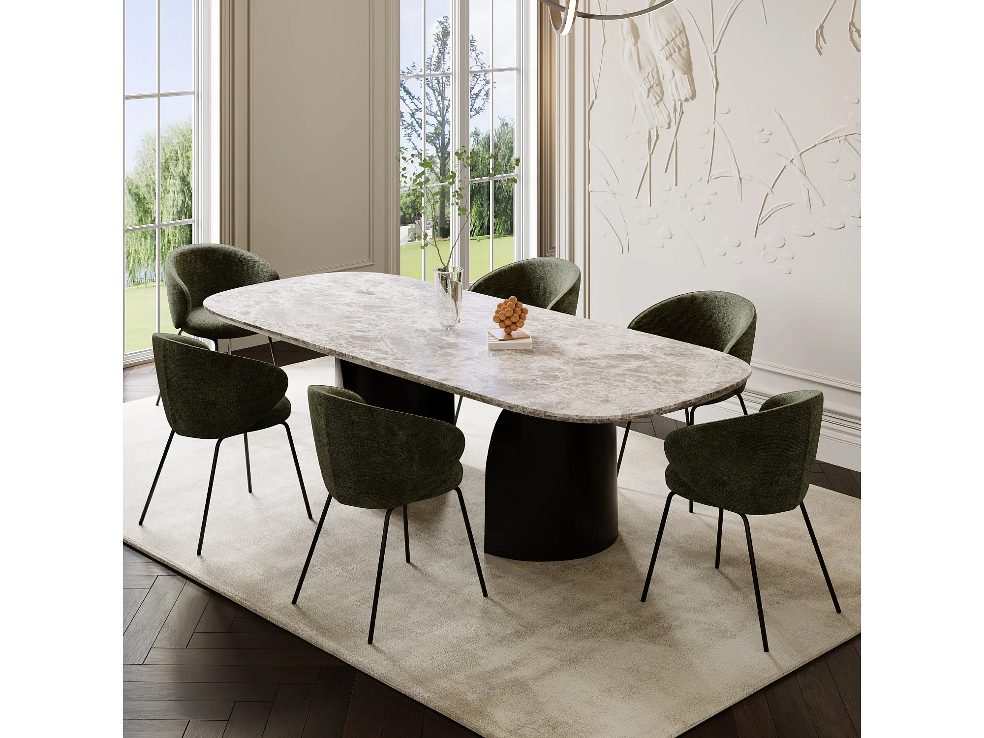 Lot de 2 chaises velours texturé kaki et pieds noirs LUNA