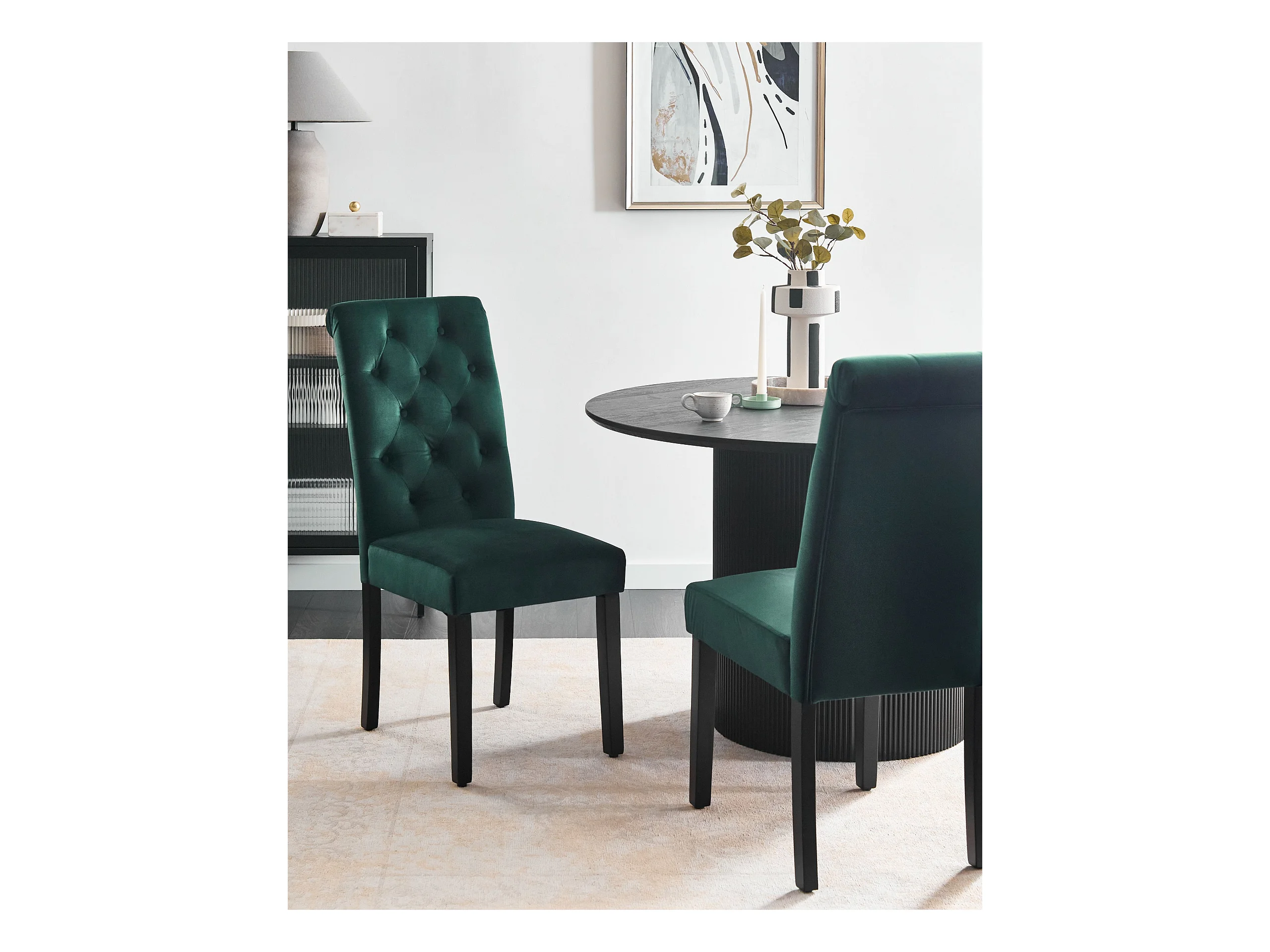 Lot de 2 chaises de salle à manger WELLSTON Velours Vert foncé