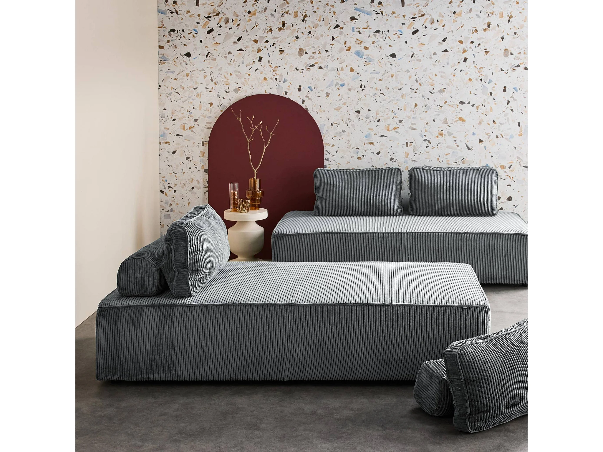 Lot de 2 chauffeuses LAO 2 places pour canapé modulable velours côtelé gris foncé. L 180 x P 90 x H 78cm