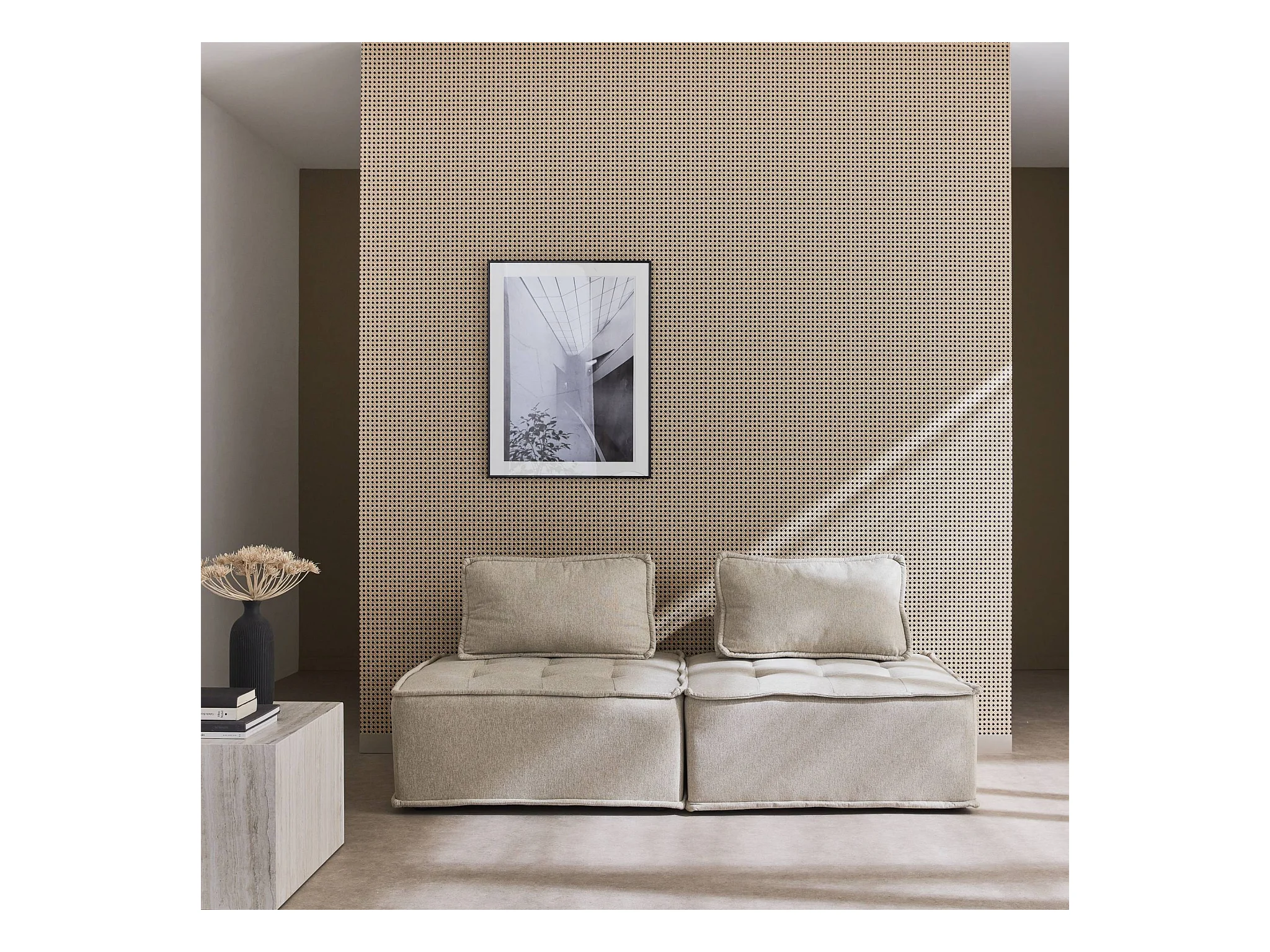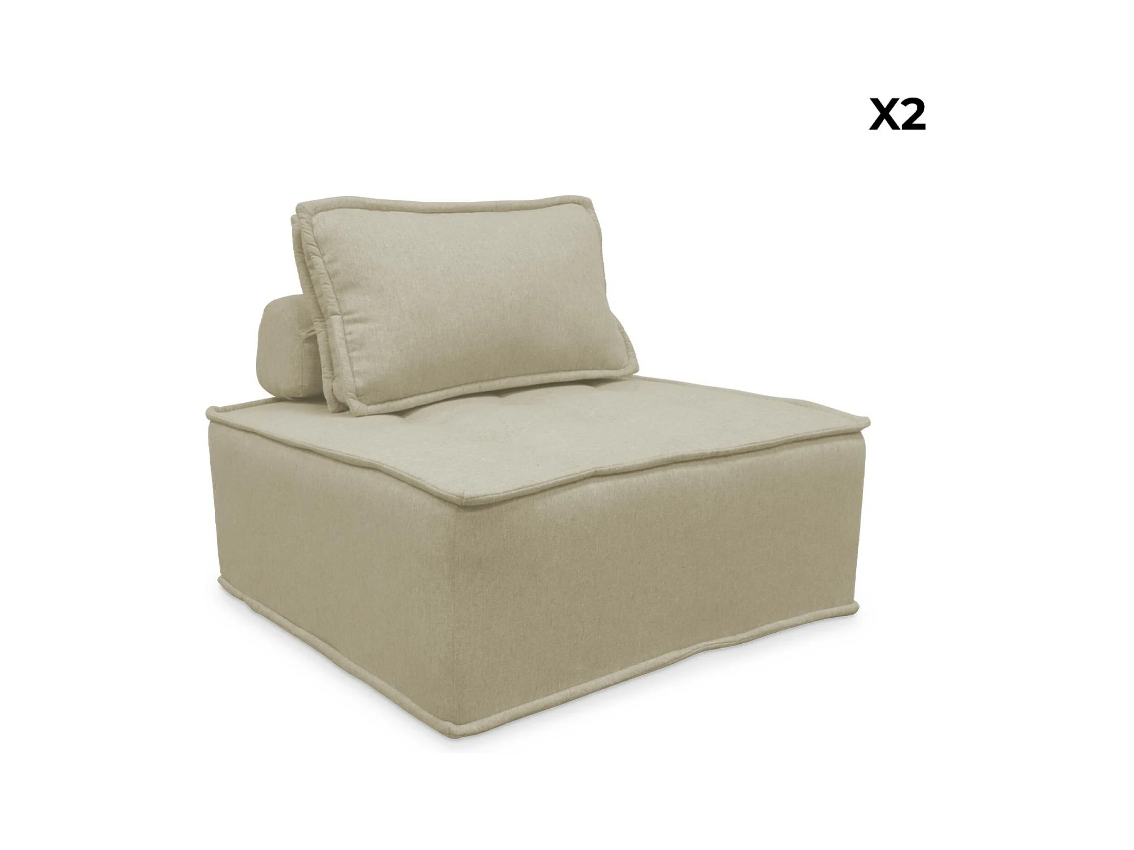 Lot de 2 chauffeuses pour canapé modulable tissu capitonné beige avec un coussin
