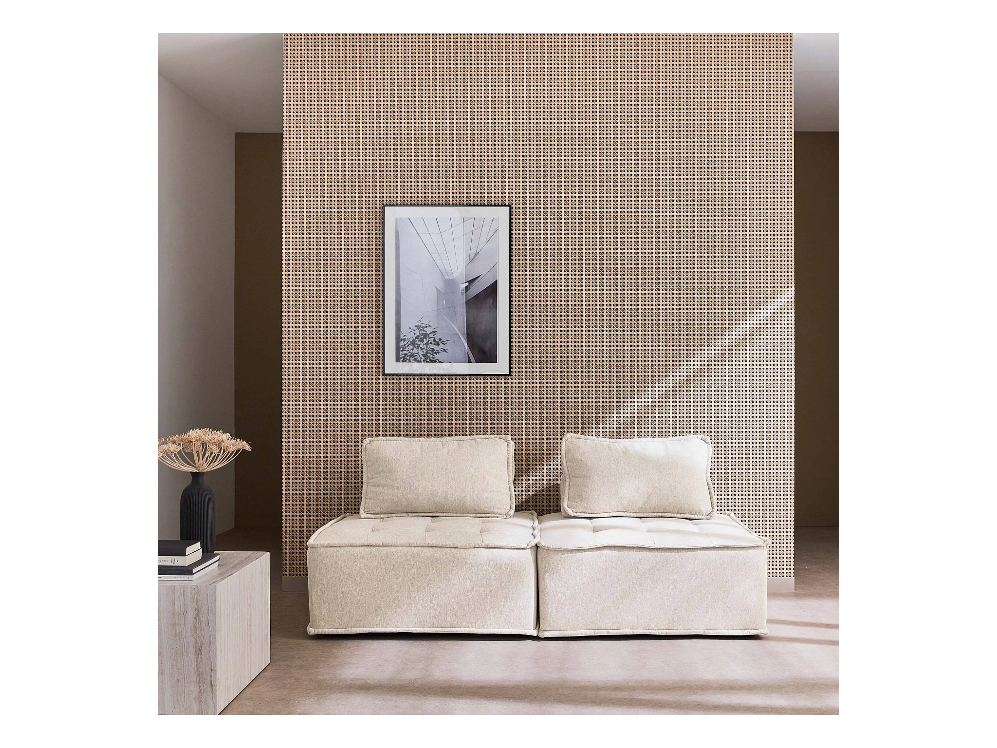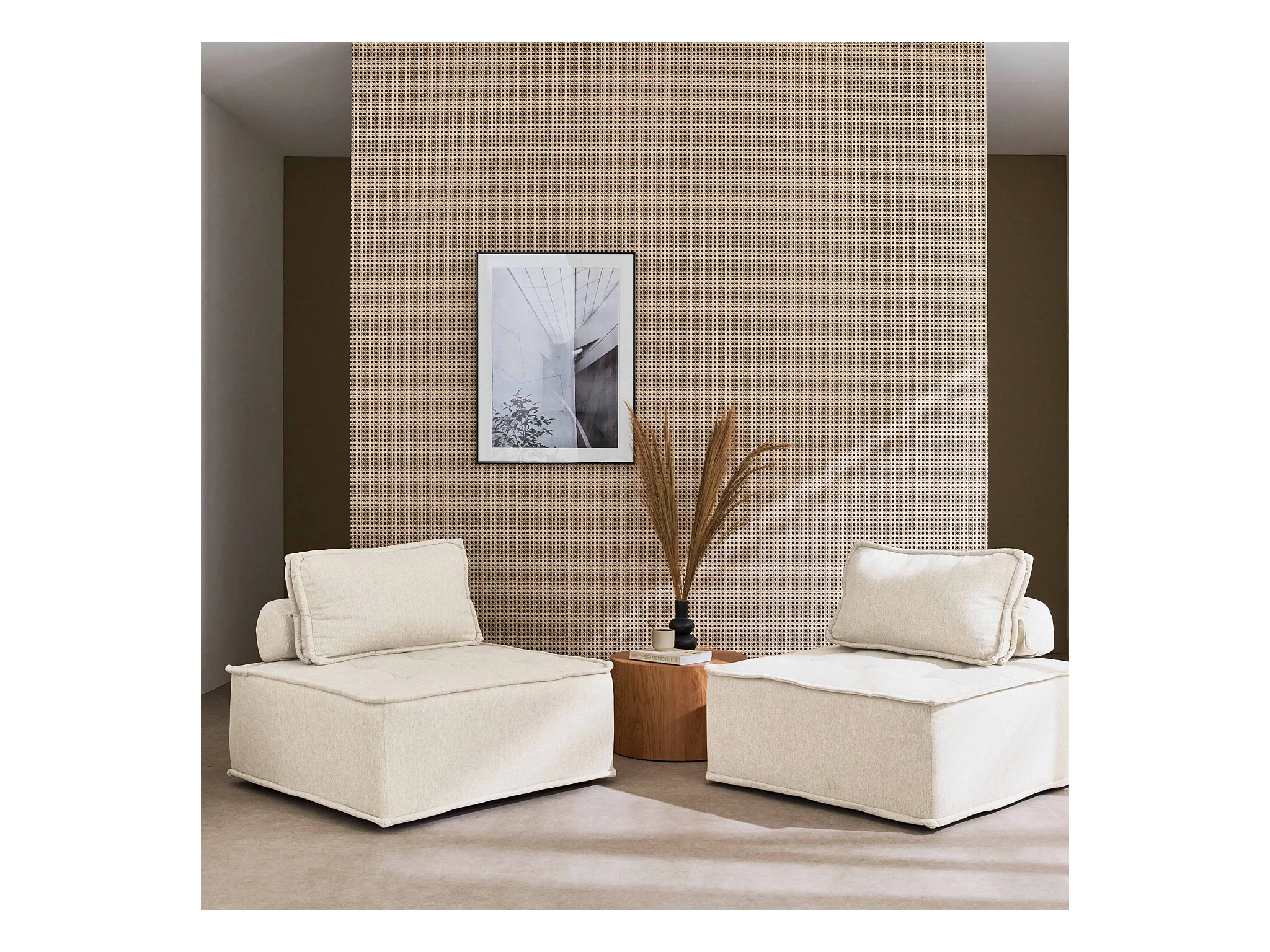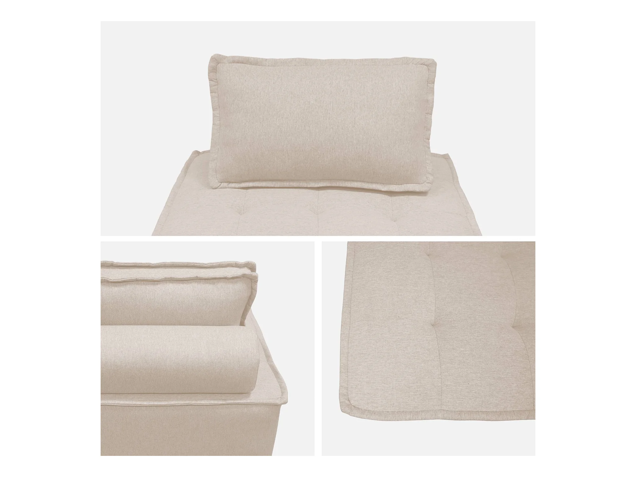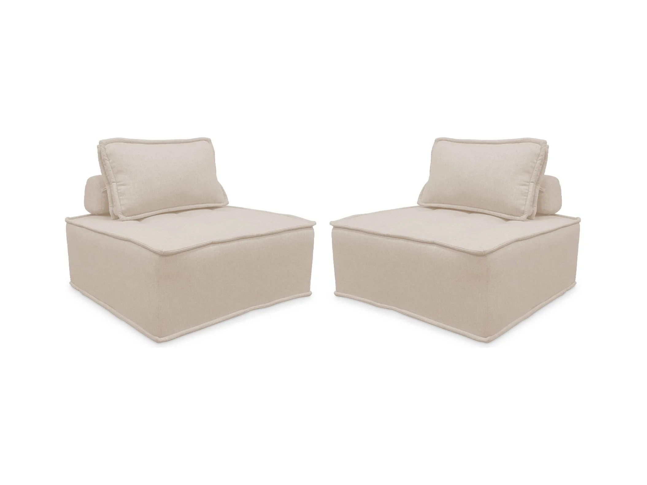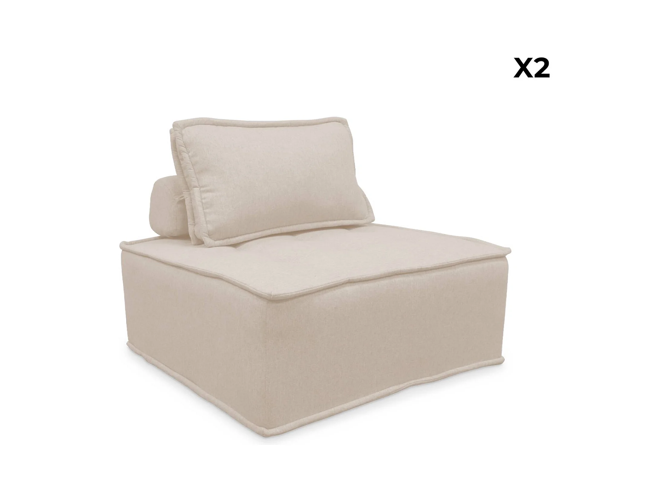 Lot de 2 chauffeuses pour canapé modulable tissu capitonné crème avec un coussin