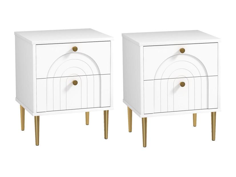 Lot de 2 chevets design 2 tiroirs ELMA blanc et or