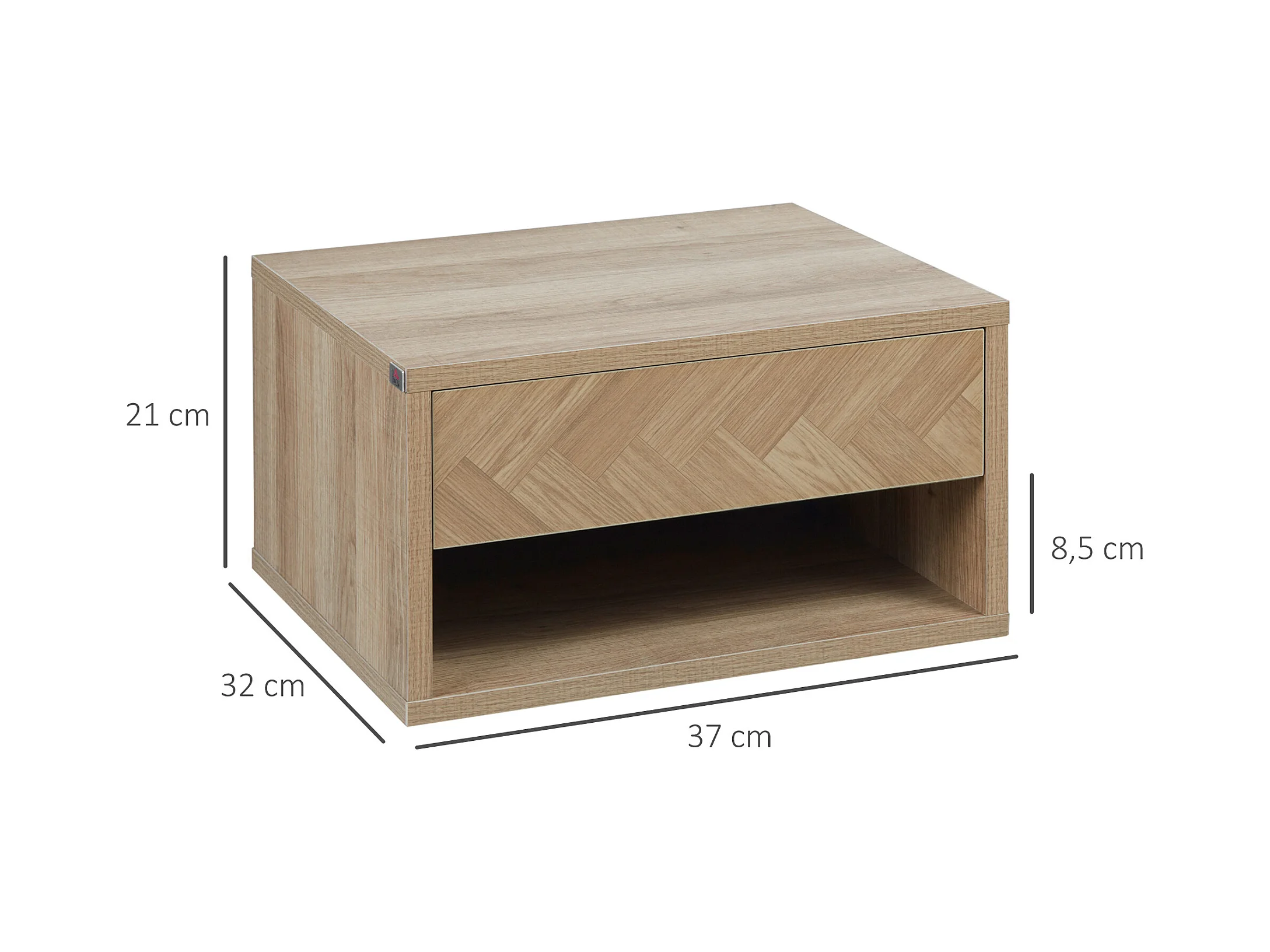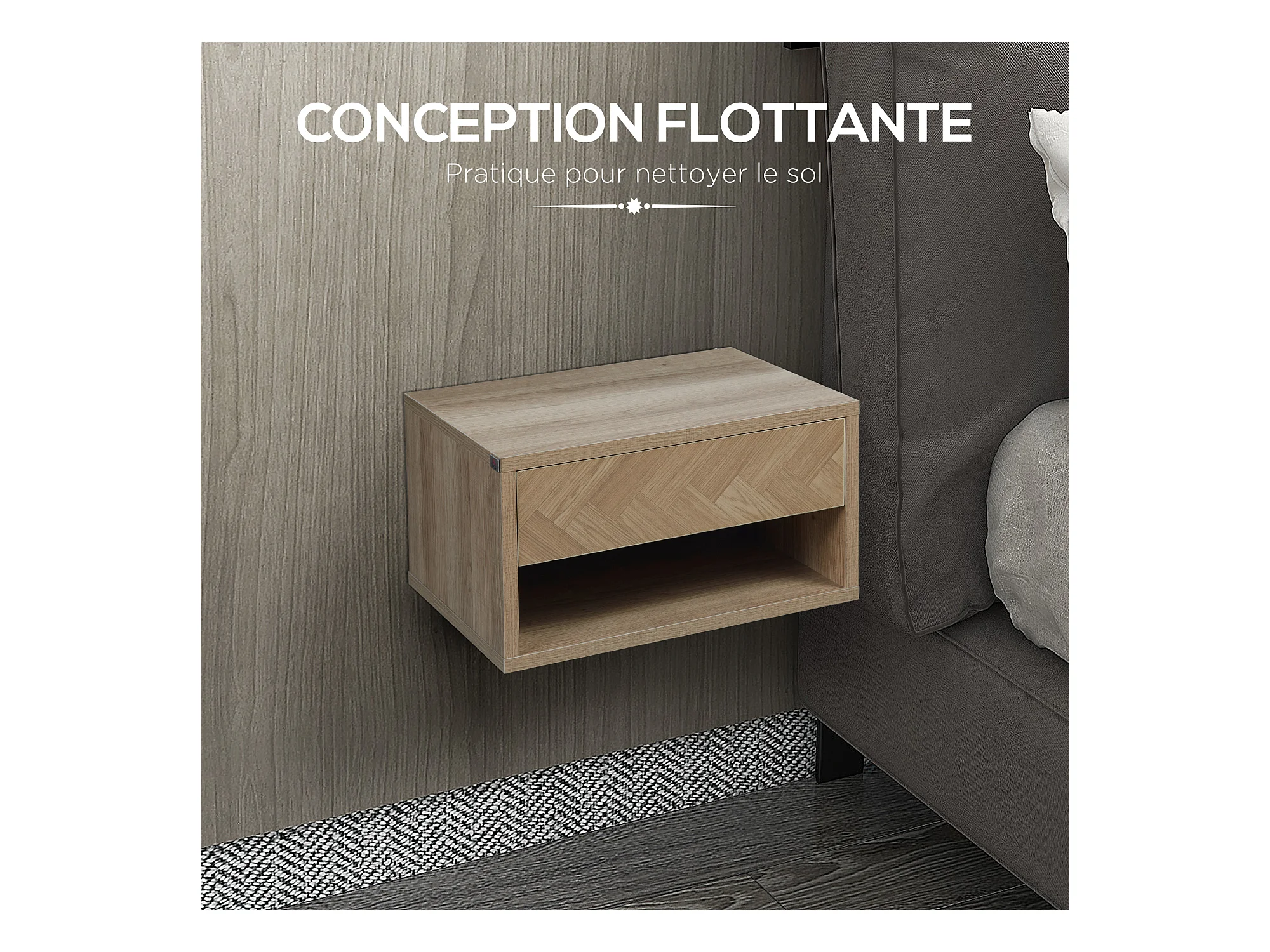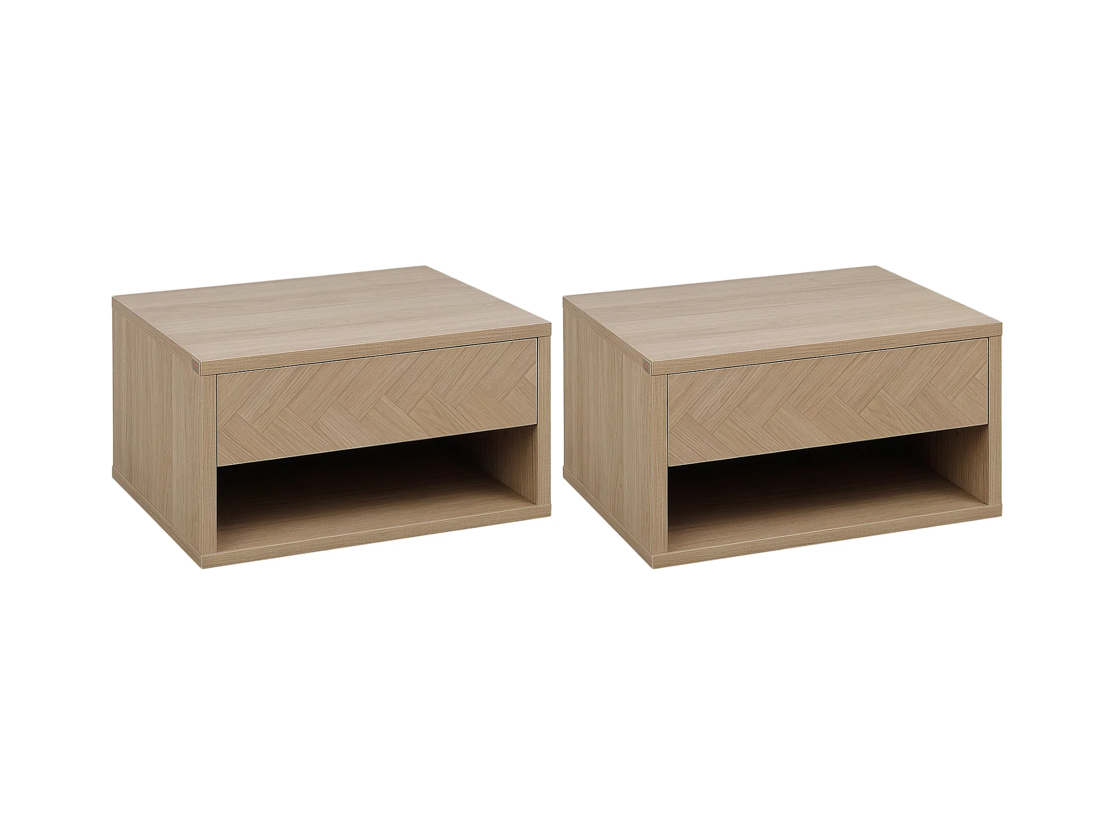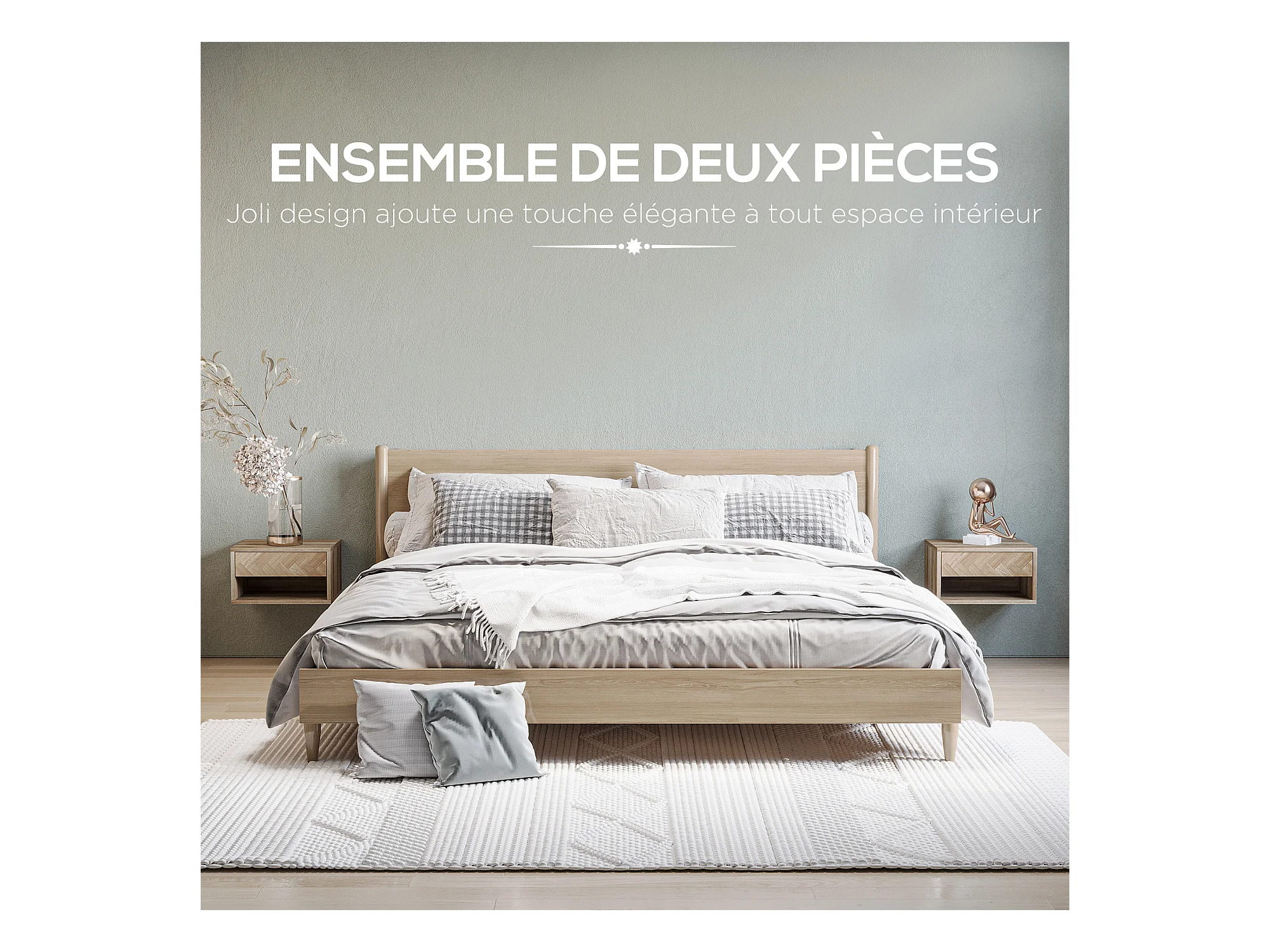 Lot de 2 chevets tables de nuit murales - tiroir coulissant, niche, plateau - dim. 37L x 32l x 21H cm - panneaux aspect chêne clair