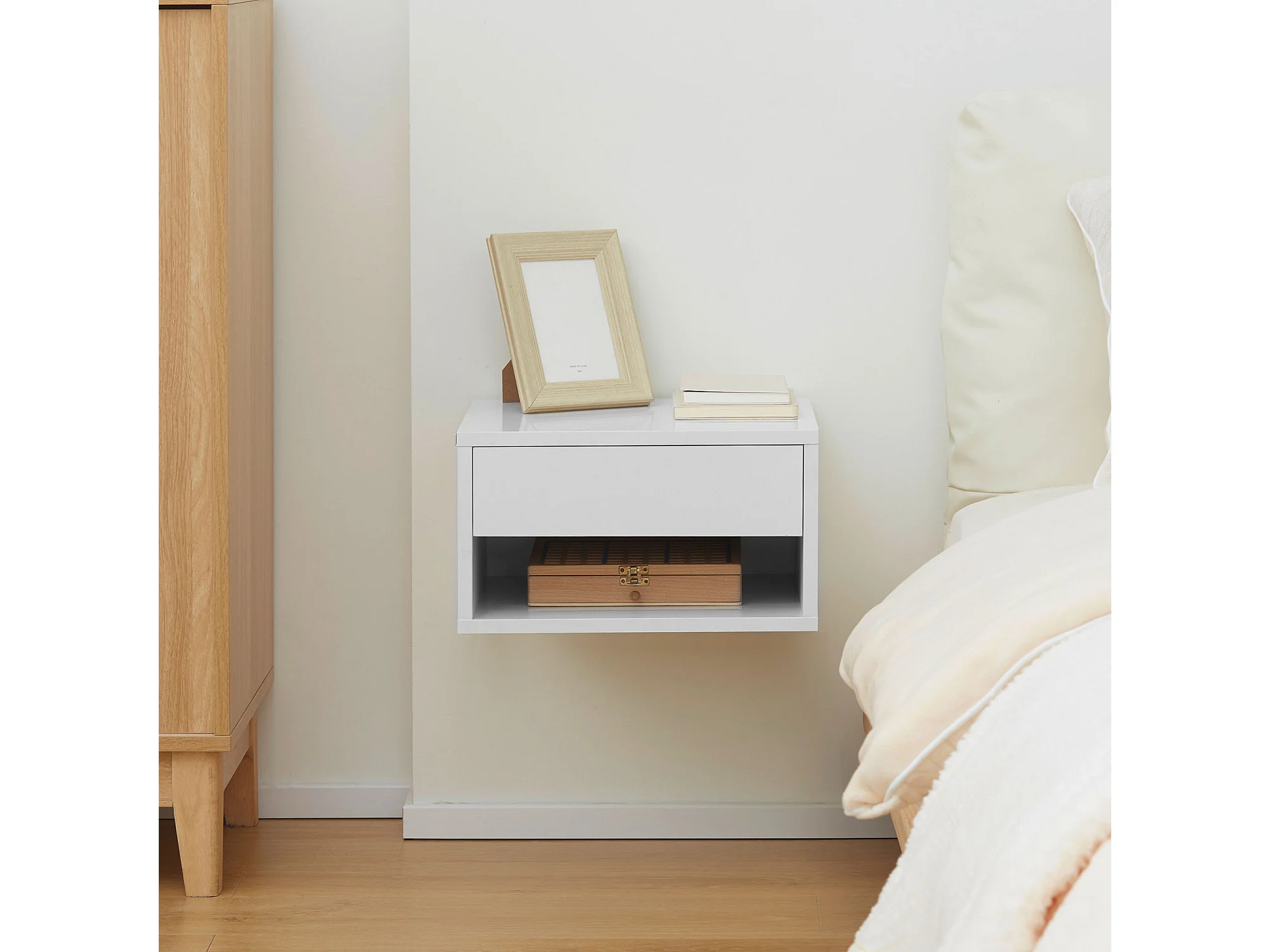 Lot de 2 chevets tables de nuit murales - tiroir coulissant, niche, plateau - dim. 37L x 32l x 21H cm - panneaux blanc