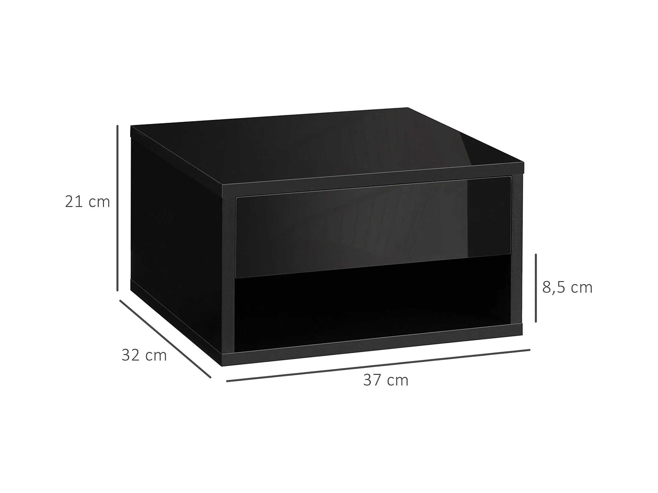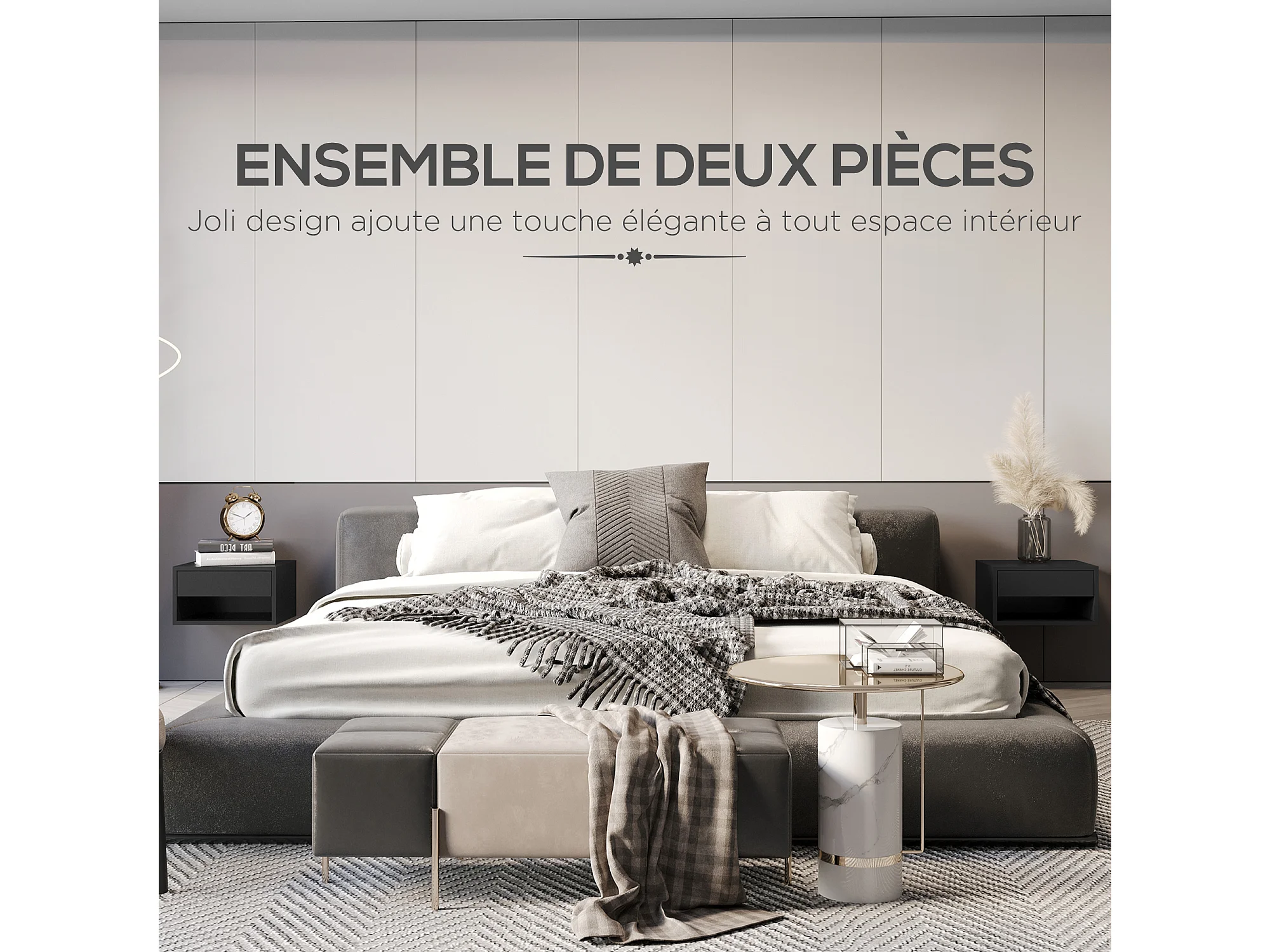 Lot de 2 chevets tables de nuit murales - tiroir coulissant, niche, plateau - dim. 37L x 32l x 21H cm - panneaux noir