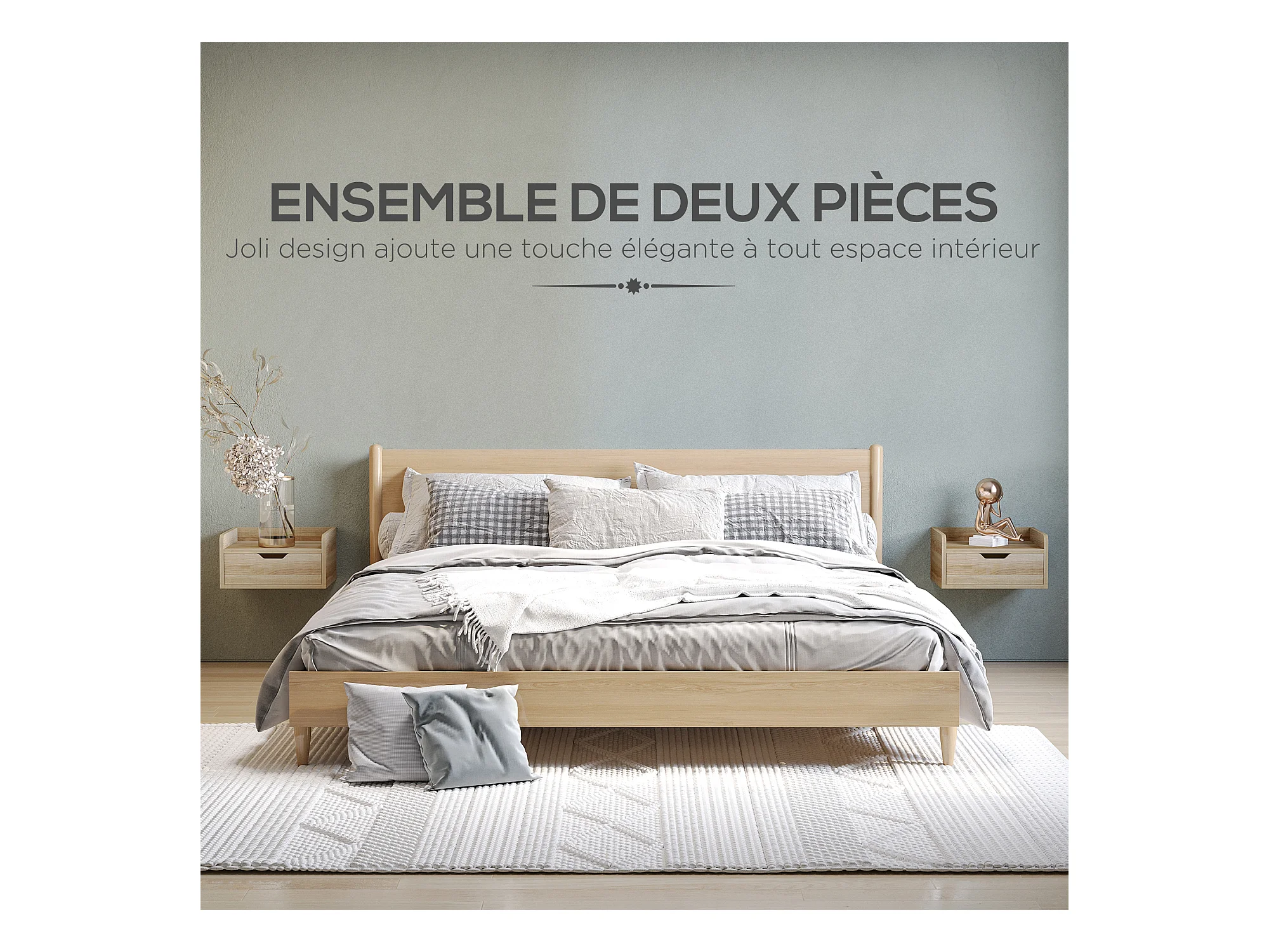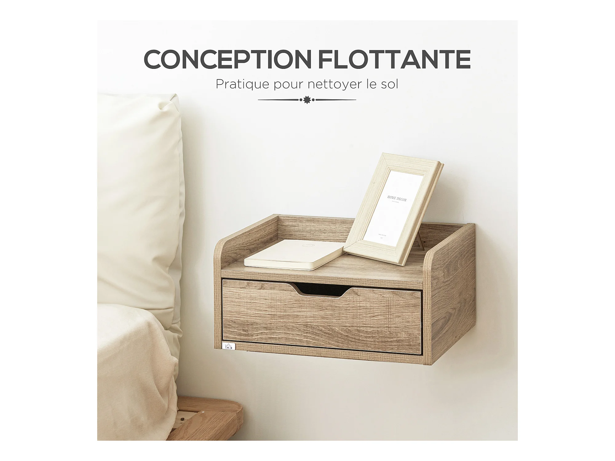 Lot de 2 tables de chevet murales - lot de 2 tables de nuit - tiroir coulissant, étagère - aspect chêne clair blanc